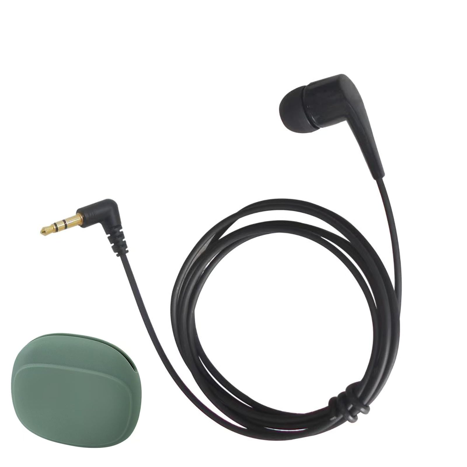 【可換え左右耳】ダイナミック密閉型 カナル型 モノラル 片耳イヤホン(可換え左右耳) 1Mコード (ブラック) 3.5mm L型/L字プラグガイド用