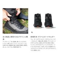 グラベルガードのズレを防ぐ踵側のラバーパーツや、合皮・TPUの高耐久素材、足裏を支える立体インソールなど、耐久性・快適性・耐滑性の面で細部までこだわった仕様です。