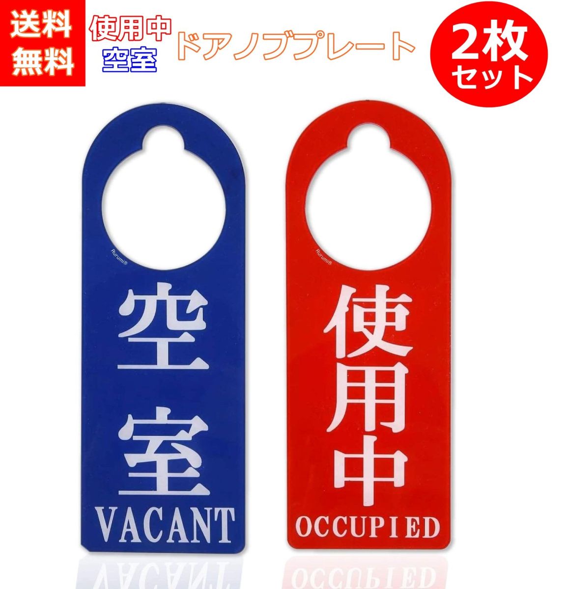 ドアノブ サインプレート 2枚セット 空室 使用中 両面表示 ドアプレート ドアノブプレート トイレなどに