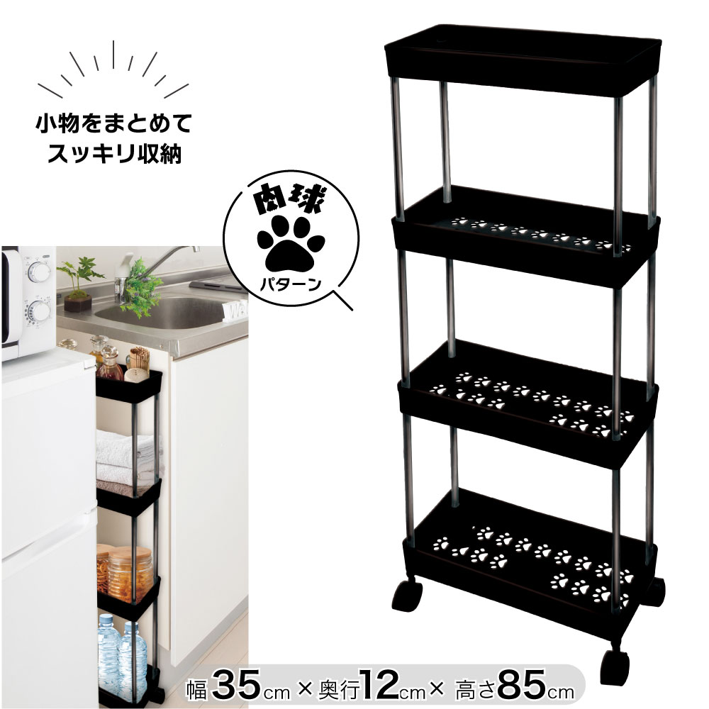 4段 スリムキャスター ラック 黒 キャスター付き 収納グッズ 収納カート コンパクト すき間 収納 棚 キッチン 収納ワゴン キッチンワゴン かわいい 便利 グッズ