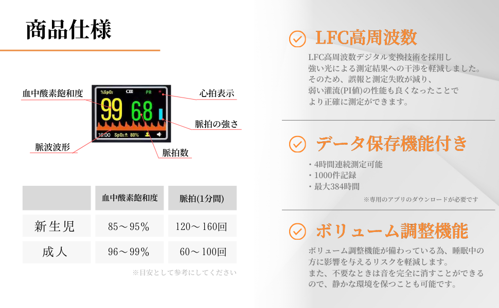 【毎日12時までの注文で当日出荷※祝日除く】アラーム・PI値機能付き パルスオキ...