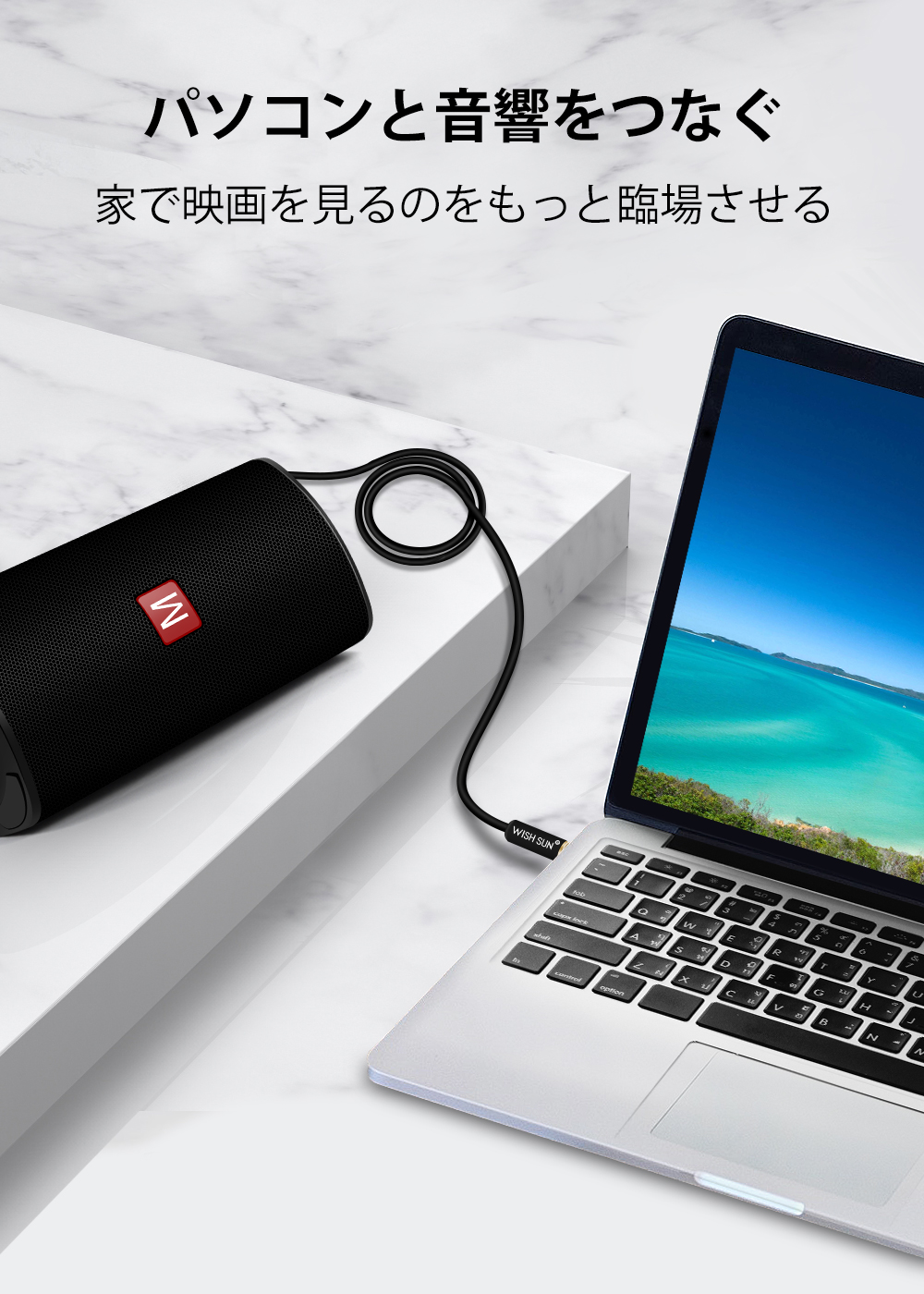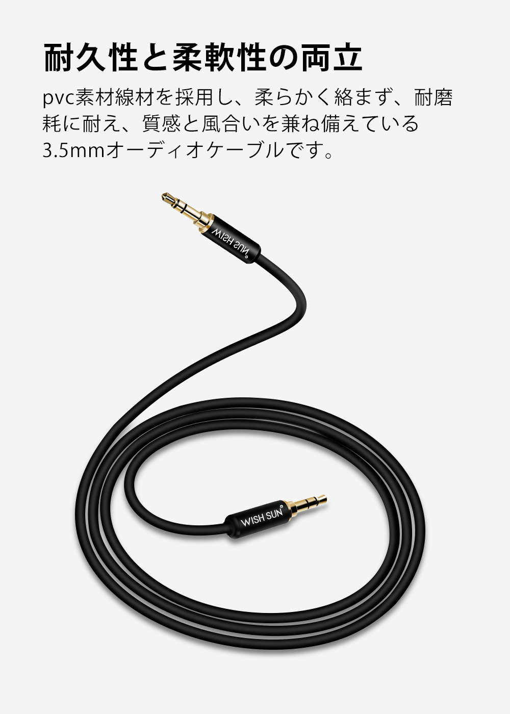 【オーディオケーブル | 幅広い互換性】3.5mmの標準ミニプラグが両端についたケーブルで、3.5mmのオーディオジャック、AUXポートを搭載したスマホ音楽プレイヤー、ヘッドホン、Hi-Fi、タブレット、ノートパソコン、iPod、カーステレオ、スピーカーなどに接続できます。【オーディオケーブル | 高品質線材採用】プラグ部にはサビに強く経年劣化・信号劣化を防ぐ24K金メッキを施した高純度ケーブルを使用し、信号の歪みや伝送ロスを抑えます。しなやかでもつれにくいケーブルなので、家でも車中でも便利に使えます。【オーディオケーブル | 高音質を再生】高品質プラグとケーブルを組み合わせたことで高中低音域がクリアになりました。イヤホン端子に差し込む時の引っ掛かり感も少なく、音楽再生中に動かしても雑音がしません。純音の信号を確実に高速伝送することができます。【オーディオケーブル | 優れた耐久性】内部の線材や構造を改良し接続不良を防止、密度の高いシールドを採用しています。細めのスタイリッシュなケーブルですが、長さは1.5mあり、耐久性が高く15000回の曲げテストもクリアしています。