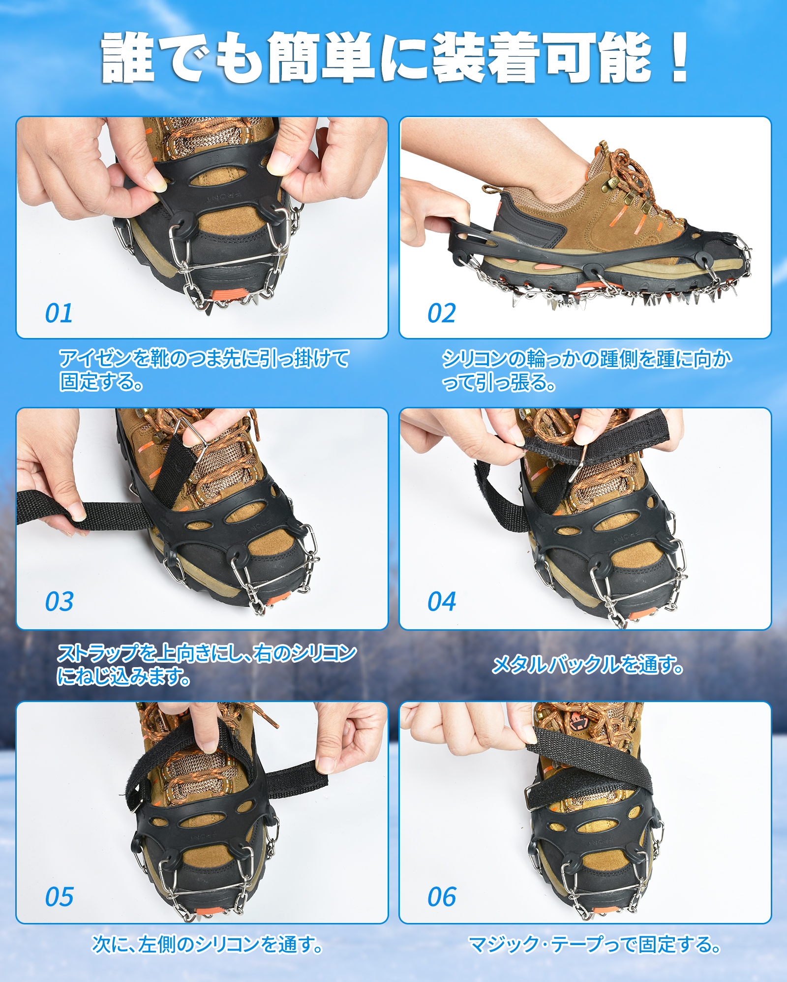 使用シーン:山登り、氷釣り、泥道、凍結した道