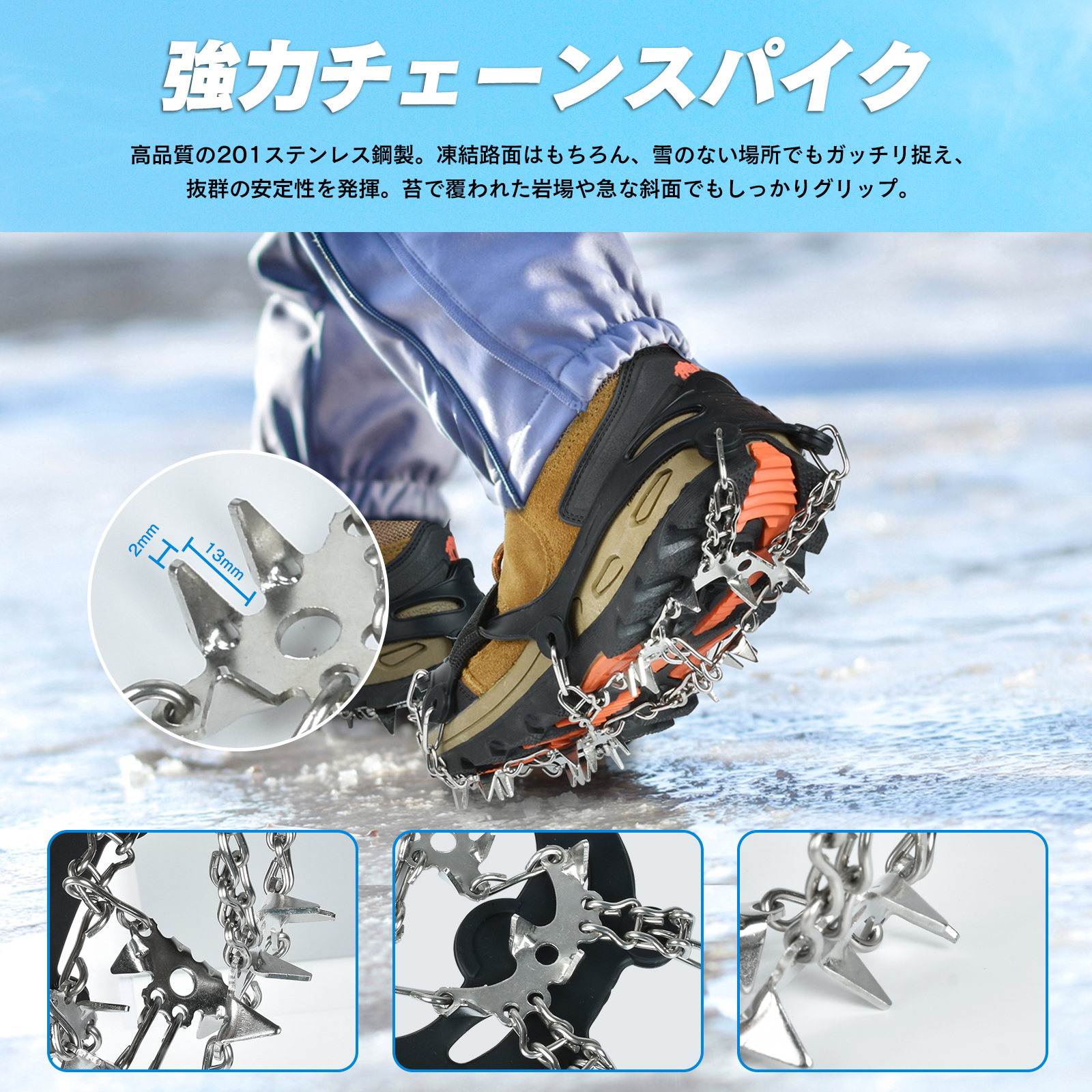 アイゼン 28本爪 スノーシュー チェーンスパイク 男性用 女性用 登山 雪山 トレッキング 氷釣り ハイキング 転倒防止 簡単装着 収納袋付き 男女兼用 チェーンアイゼン 靴底 滑り止め 転倒防止 簡単装着 雪道 登山 チェーンスパイク 201ステンレス製 スノースパイク 凍った道 雪山 登山