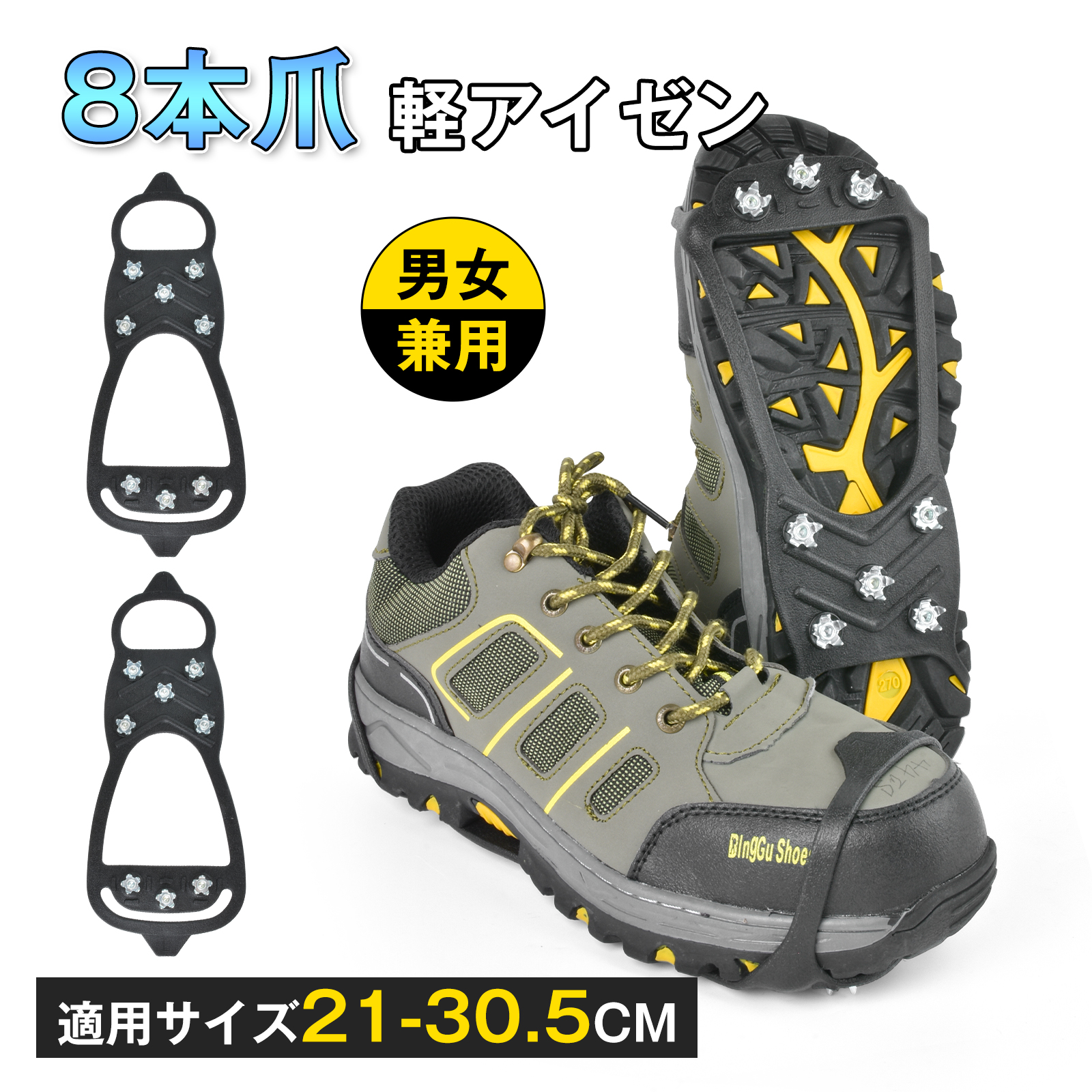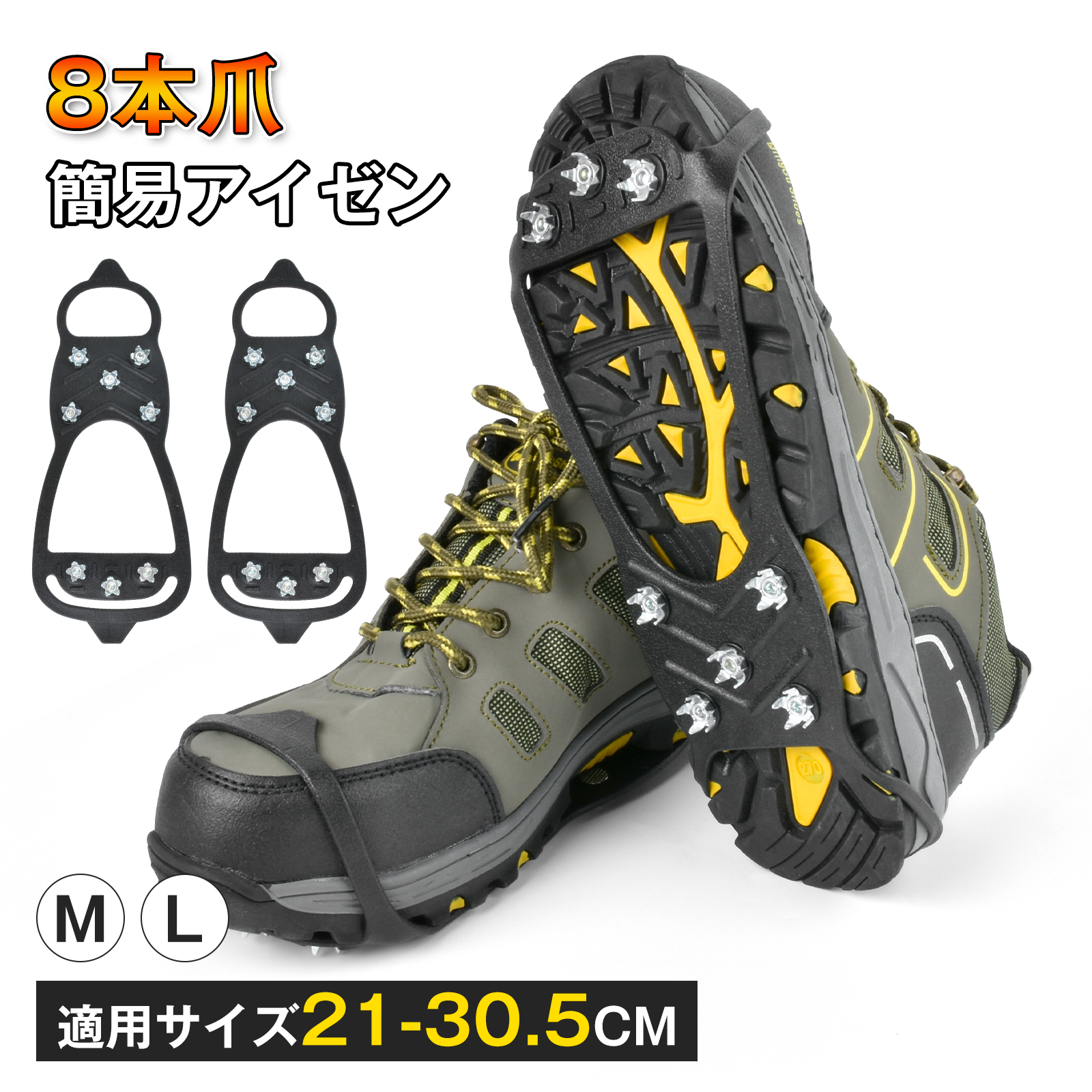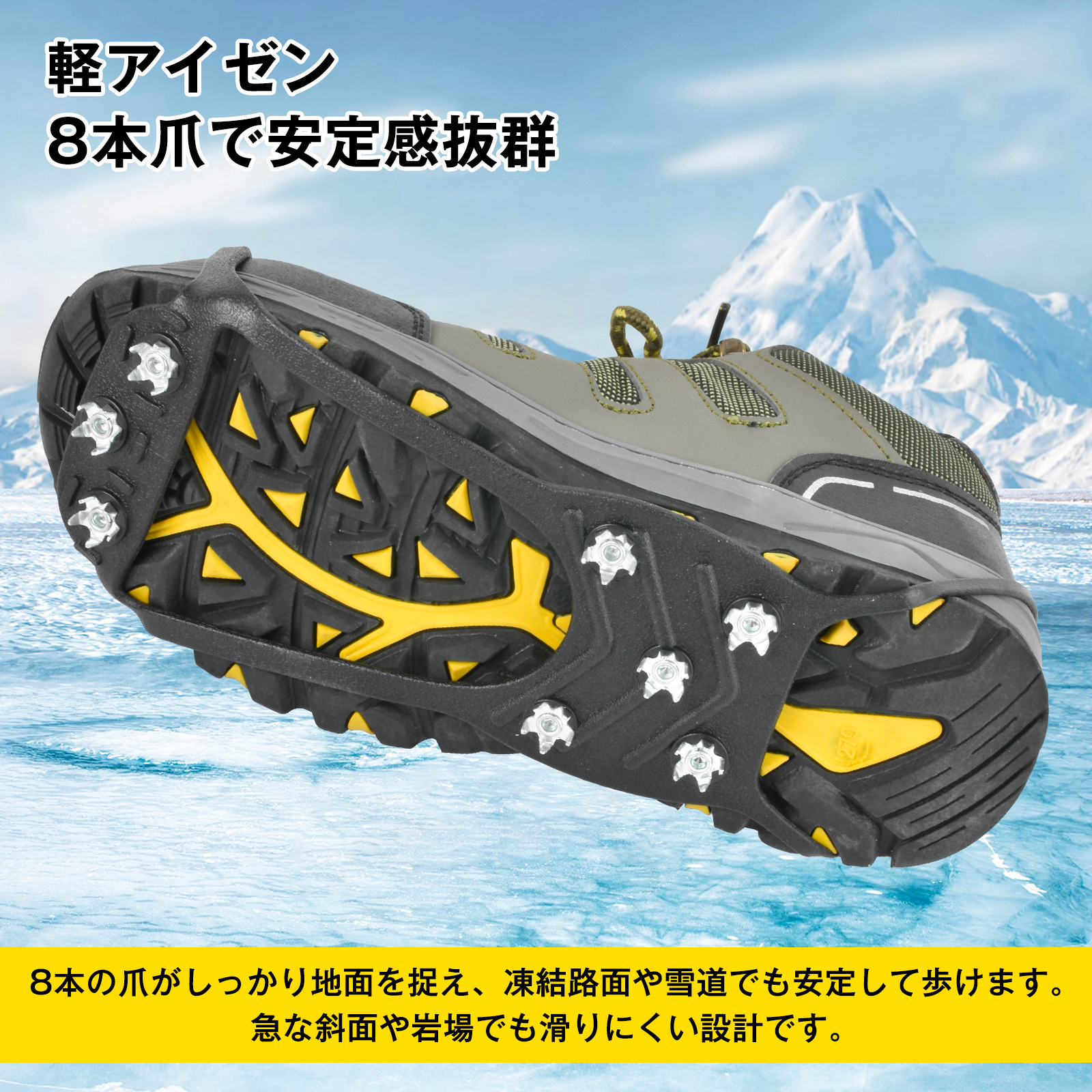 アイゼン スノースパイク 雪 滑り止め 靴 滑りとめ 雪 8本爪 かんたん装着 靴底 メンズ レディース キッズ 脱着 簡単装着 安全 雪道 凍結 スノー ブーツ