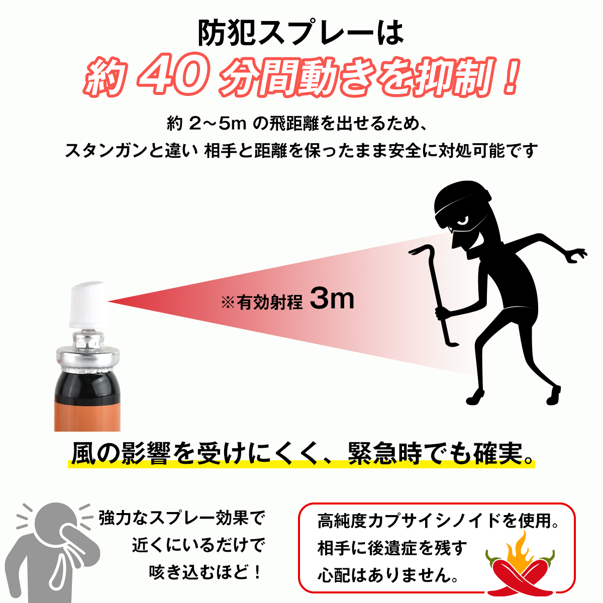 噴射距離:5m(有効射程約3m)