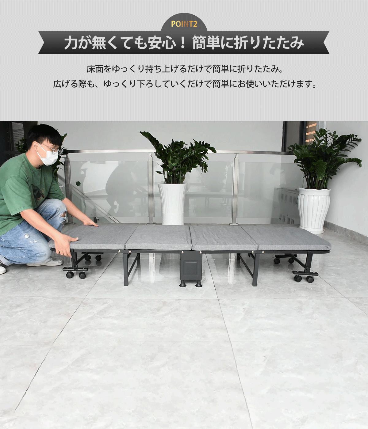 厚み4cmのマットレスが付いている、マットレスー一体型のベッドなので布団を敷かずにそのまま寝ることができます。