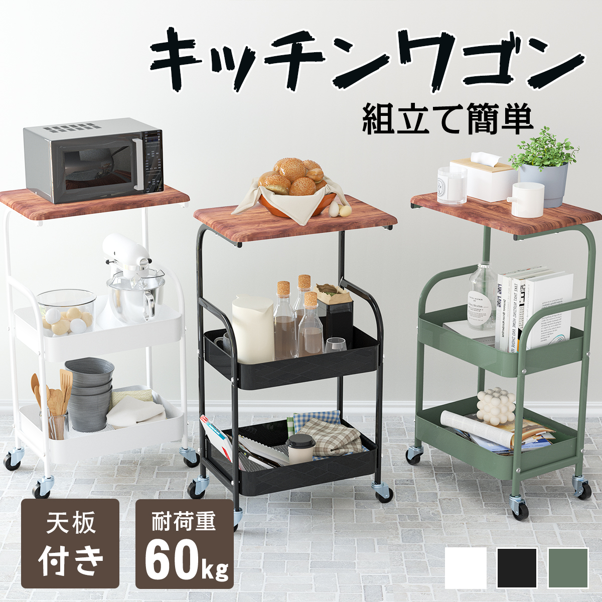 キッチンの調味料がゴチャゴチャ、リビングの雑誌が山積み… このカート 1 台で、調理時のスペース不足や部屋の見栄え悪化を瞬時に解消!