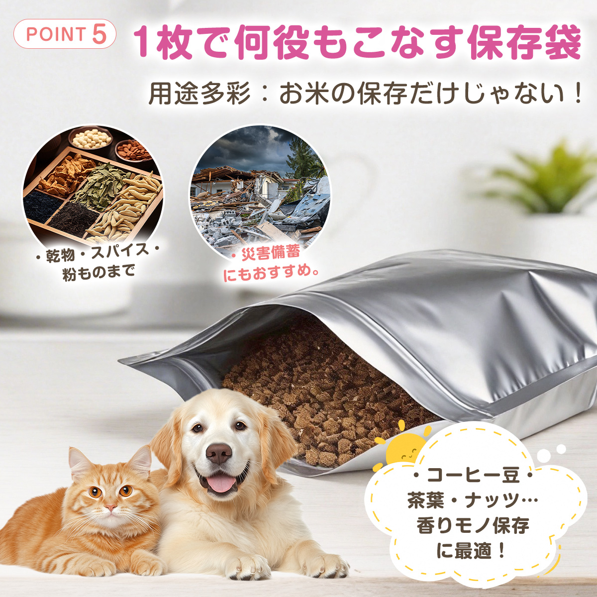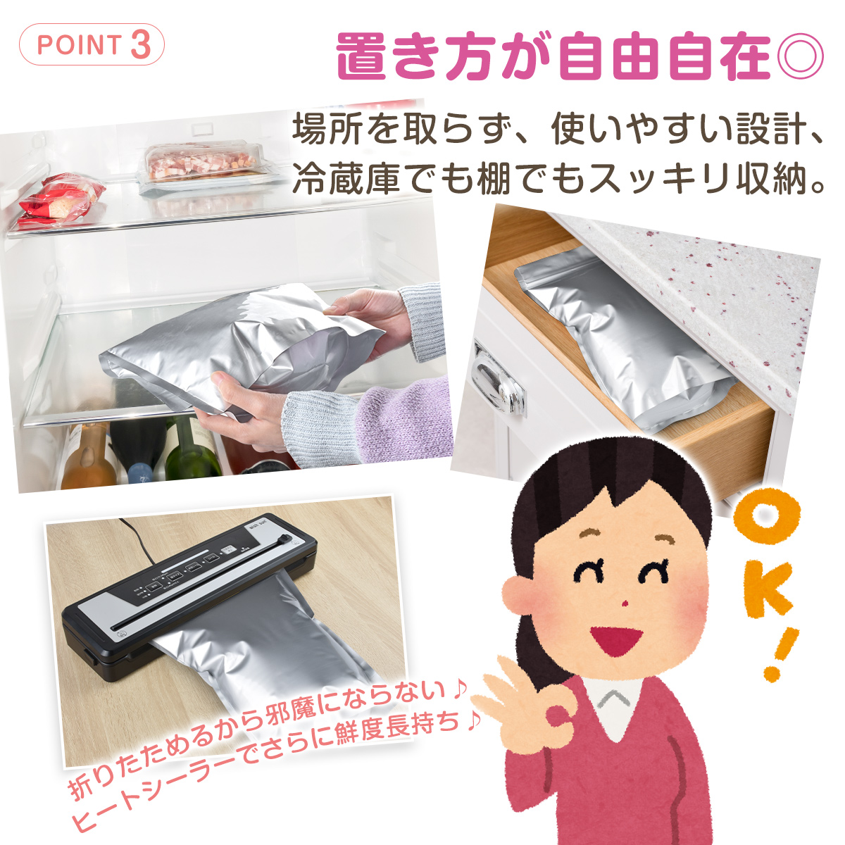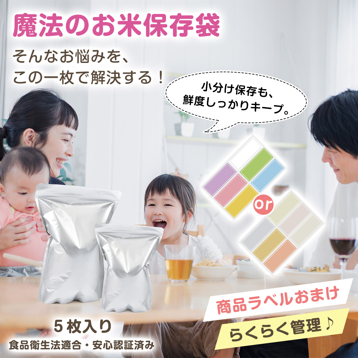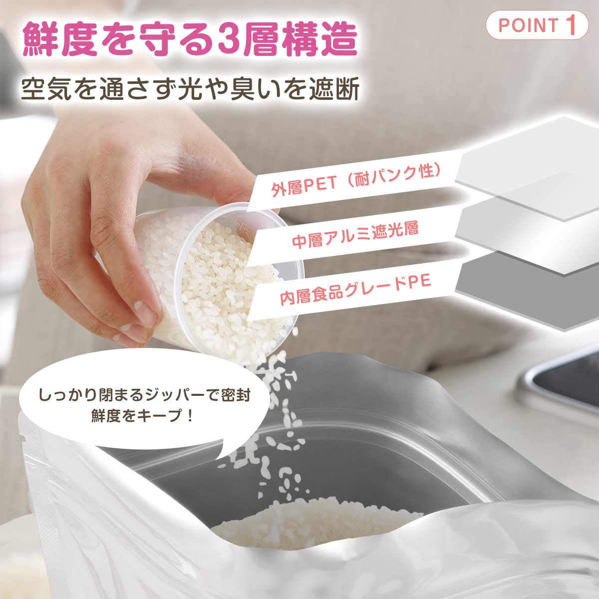 お米本来の風味や鮮度を長くキープし、さまざまな食品保存に安心してお使いいただけます。