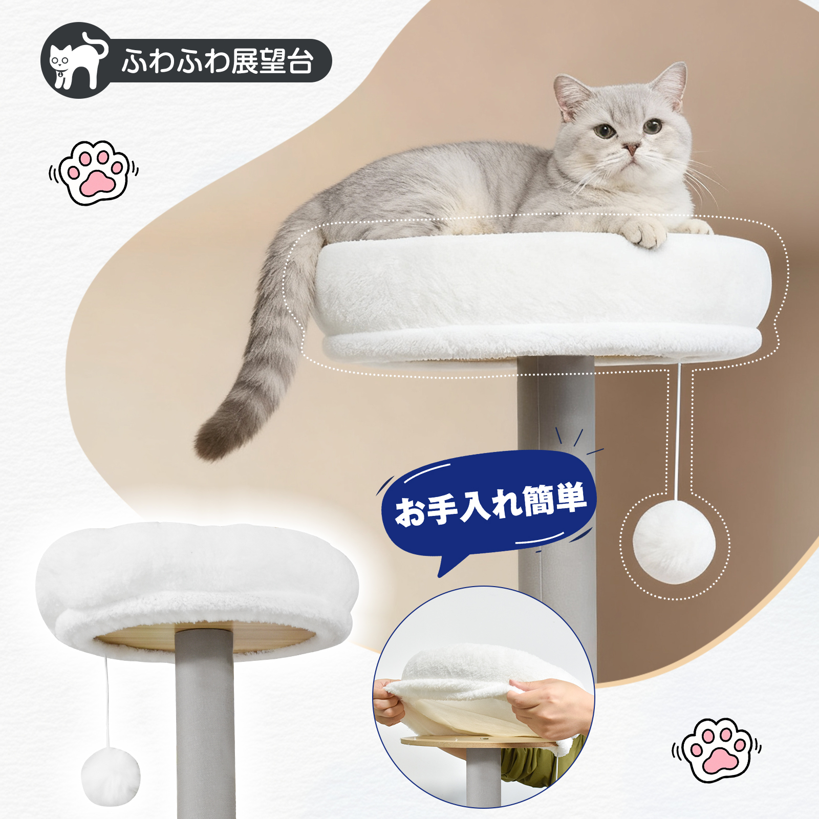 キャットタワー スリム 猫タワー 宇宙船 木製 スリム 爪とぎ クリアボウル 木登り 据え置き 高さ142cm/183cm 安定 おしゃれ 大型猫 中型 おしゃれ 省スベース