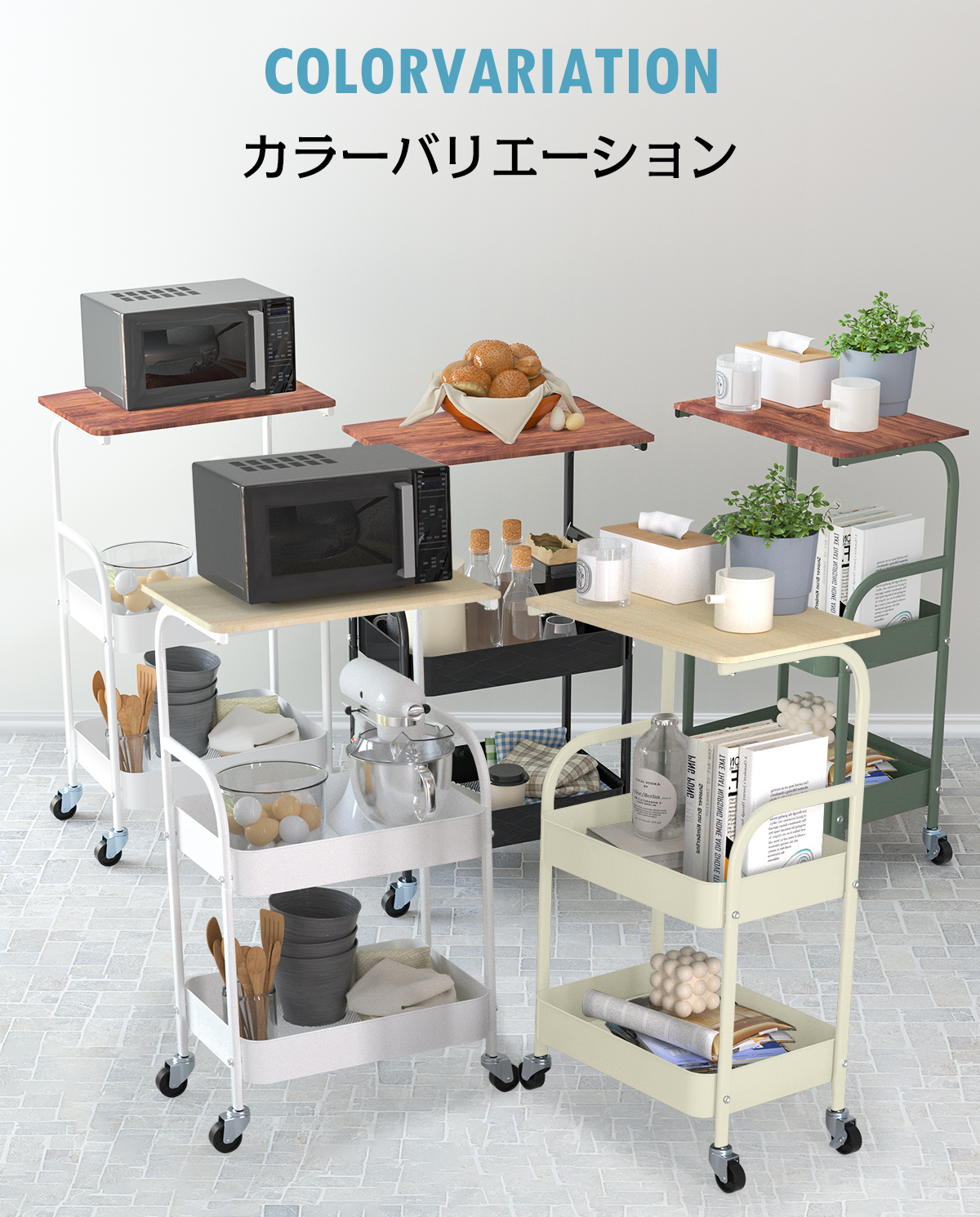 キーワード キッチン収納 キッチン 天板 収納 大容量 キッチン家具 キッチンワゴン 天板付き ベビーワゴン 3段 2段 キャスター付き ワゴン キャスター付き リビング収納 子供部屋 子供 ラック ランドセルラック 調味料 調味料入れ パステル パステルカラー ブラック ホワイト グリーン