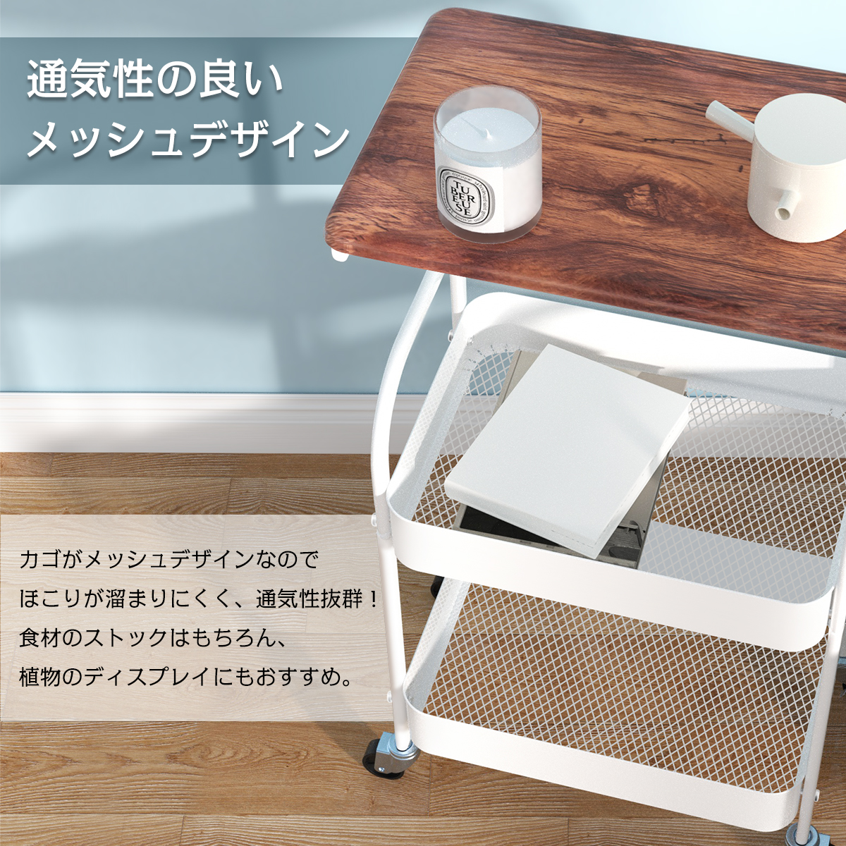 カゴがメッシュデザインなのでほこりが溜まりにくく、通気性抜群!