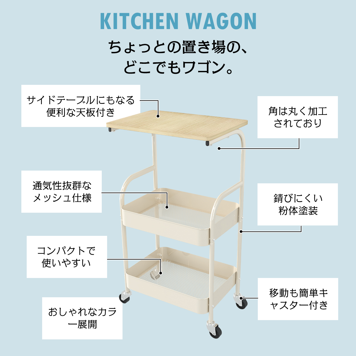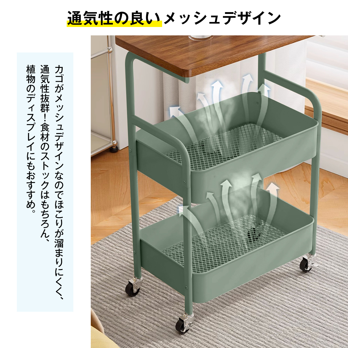 キッチンワゴン 天板 キャンセル付き ワゴン スチール製 収納ラック 収納 マルチワゴン 2段 ラック 北欧風 隙間収納 バスケットトローリー キッチンストッカー