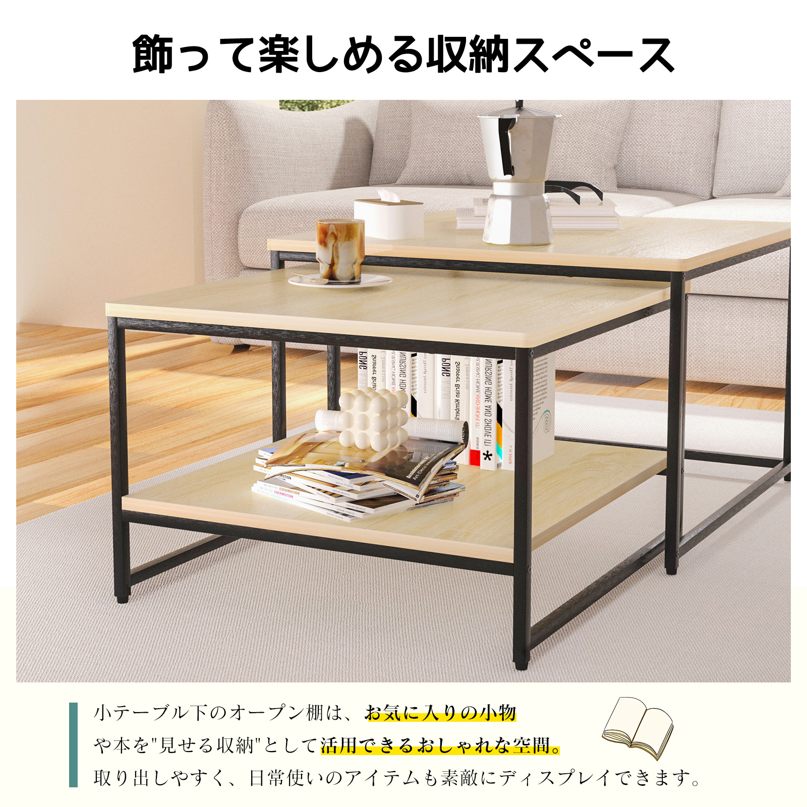 ネストテーブル 2個セット センターテーブル 正方形 60×60 54×54 幅114cm セラミックテーブル ローテーブル サイドテーブル リビングテーブル 木目 伸縮高級感