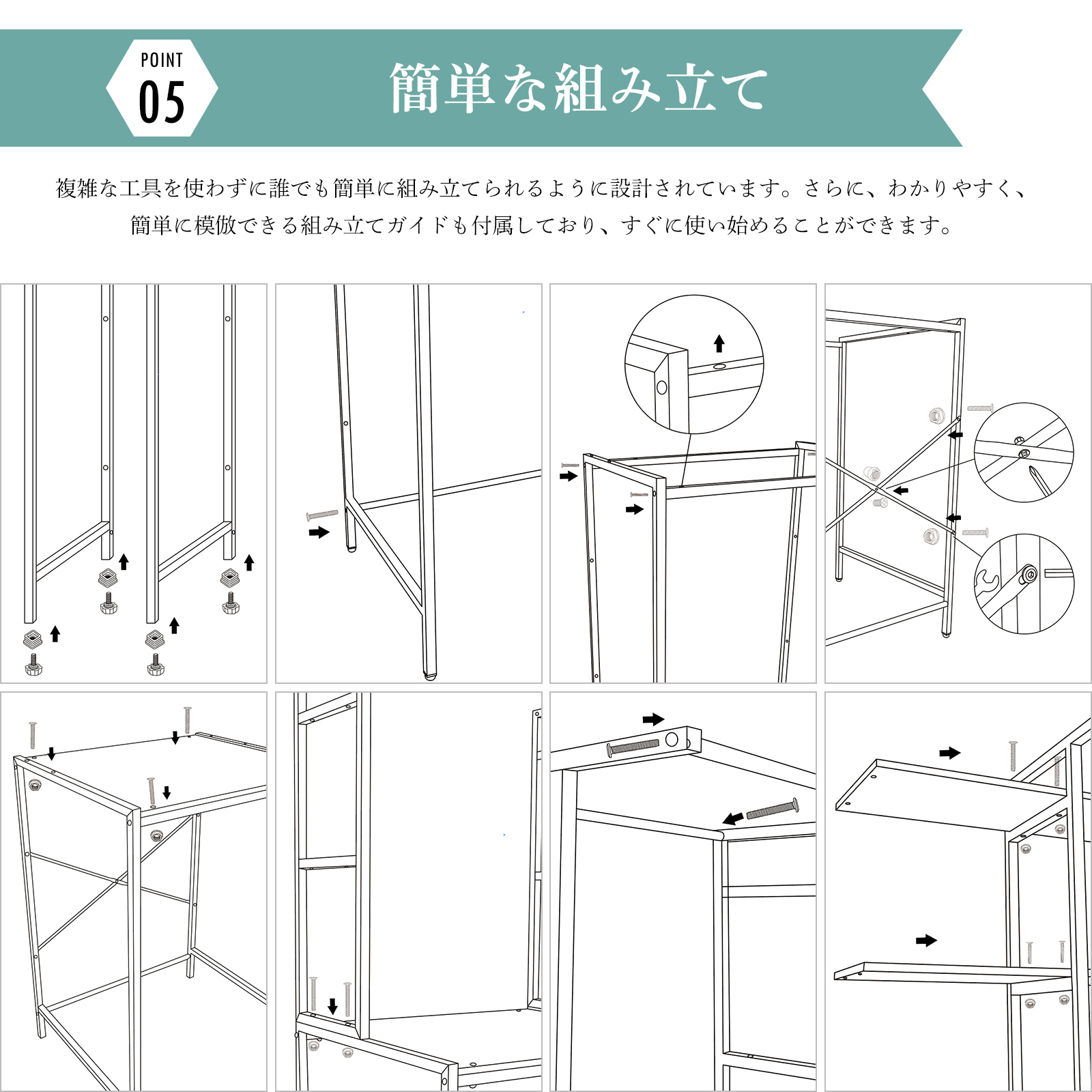 複雑な工具を使わずに誰でも簡単に組み立てられるように設計されています。さらに、わかりやすく、簡単に模倣できる組み立てガイドも付属しており、すぐに使い始めることができます。
