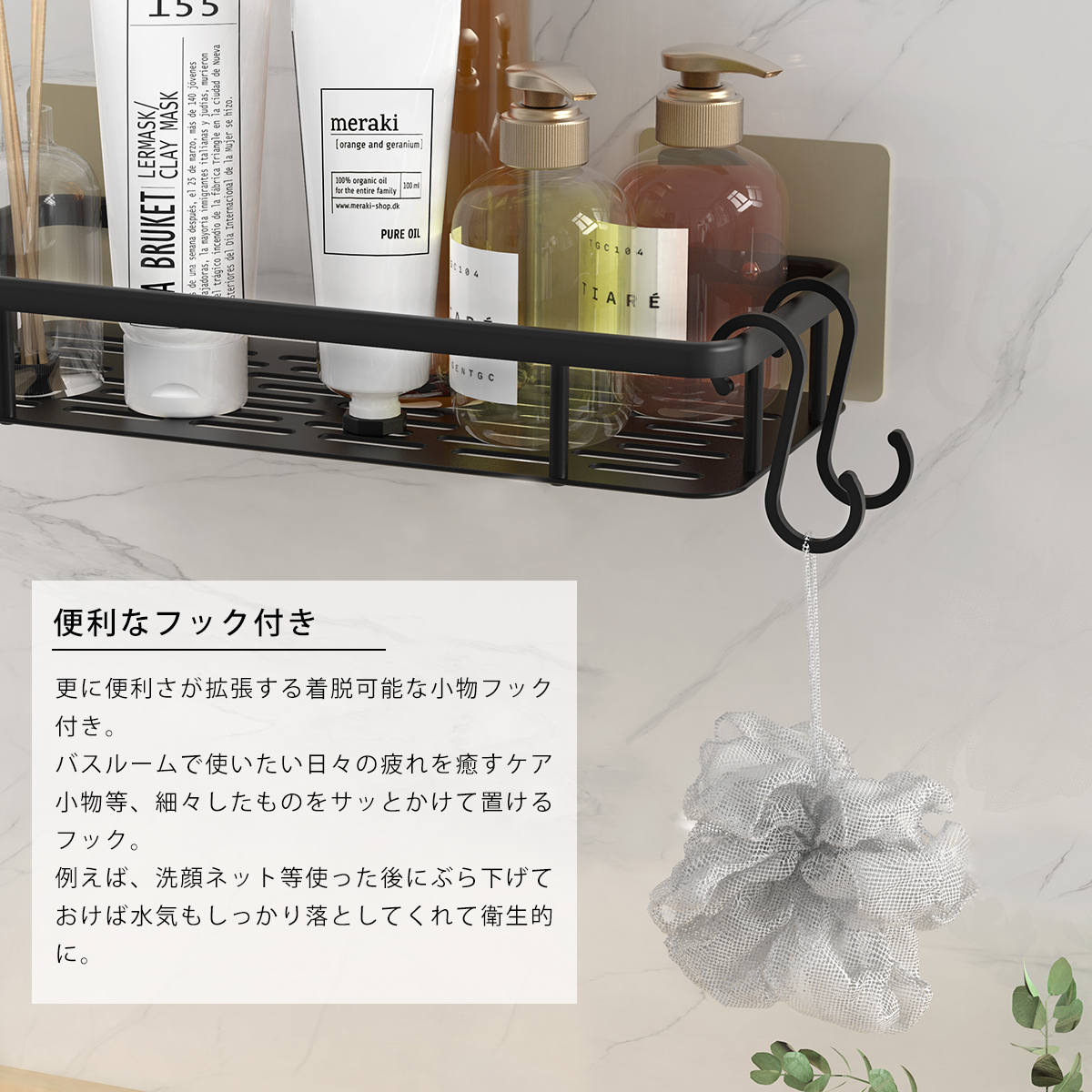 バスルームラック バスラック 浴室ラック 調味料ラック バスルームラック シャンプーラック 北欧 錆びない フック付き シャワーラック 壁面収納 壁掛け