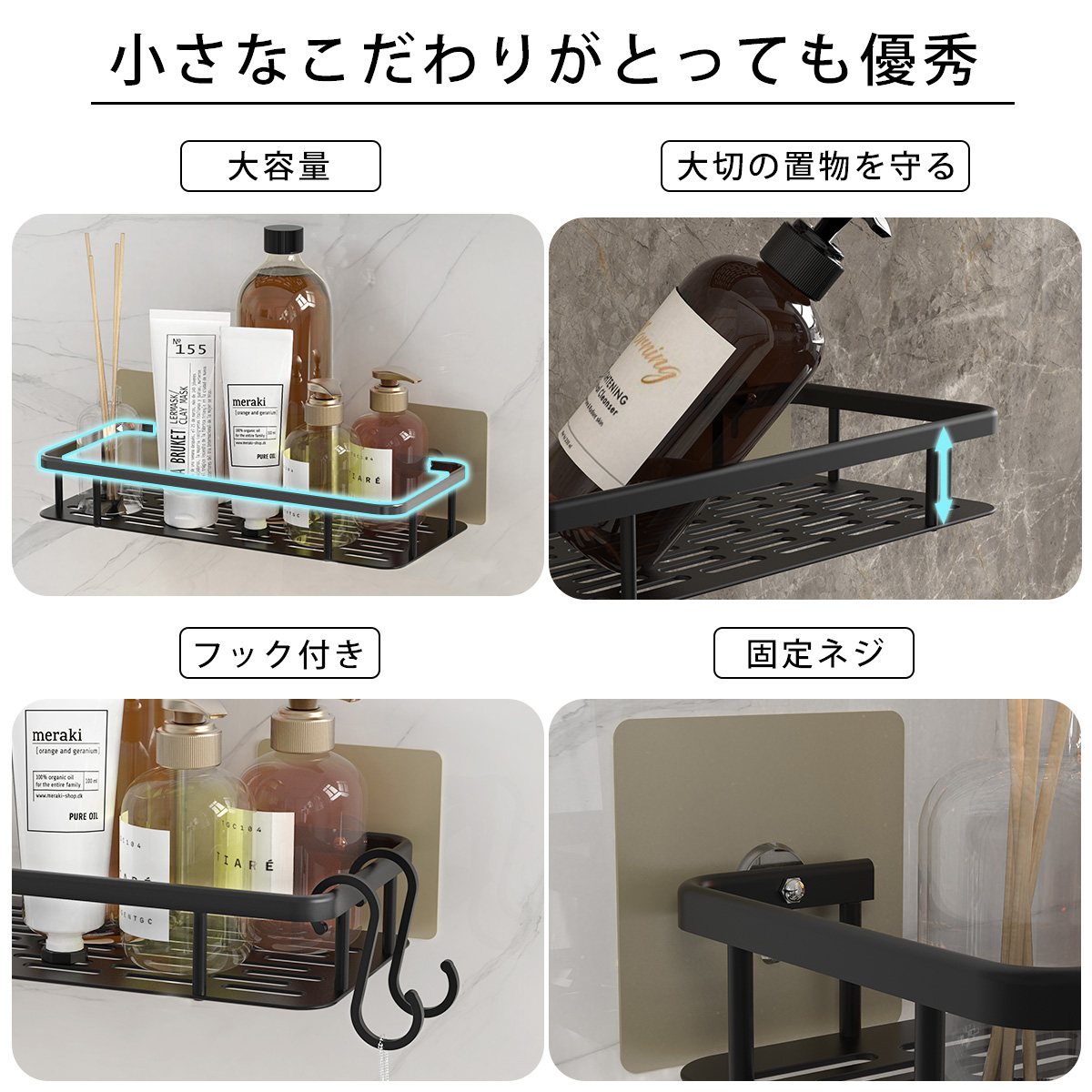 浴室用 お風呂場用 キッチン用 洗面所用 収納棚 バスラック シャンプーラック ディスペンサーラック バスルームラック おすすめ 洗いやすい アルミニウム合金 おもちゃ 収納 カビ防止 錆びない 人気 浴室用ラック コンパクト 壁掛け 強力テープ 便利 バスラック 浴室ラック 調味料ラック バスルームラック シャンプーラック 北欧 錆びない フック付き シャワーラック 壁掛け おしゃれ お風呂場 キッチン 洗面所