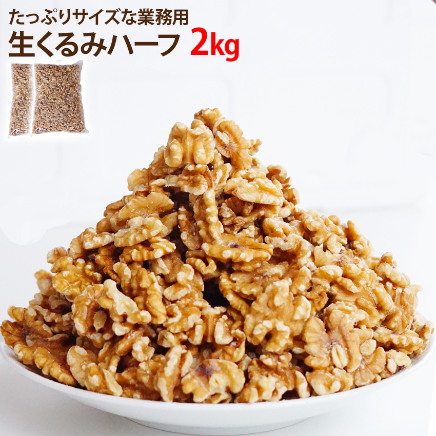 生クルミ ハーフ 2kg 1kgが2袋 業務用 無塩 無加熱 無油 くるみ ダイエット 健康志向 オメガ3脂肪酸 美容 胡桃 常温