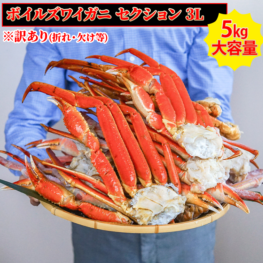 訳あり 冷凍 ボイルズワイガニ 脚 セクション 5kg 3Lサイズ 約15肩入り 300-350g/肩 送料無料 蟹鍋 茹でガニ ずわい蟹 ズワイ蟹 しゃぶしゃぶ 年末年始 鍋 徳用