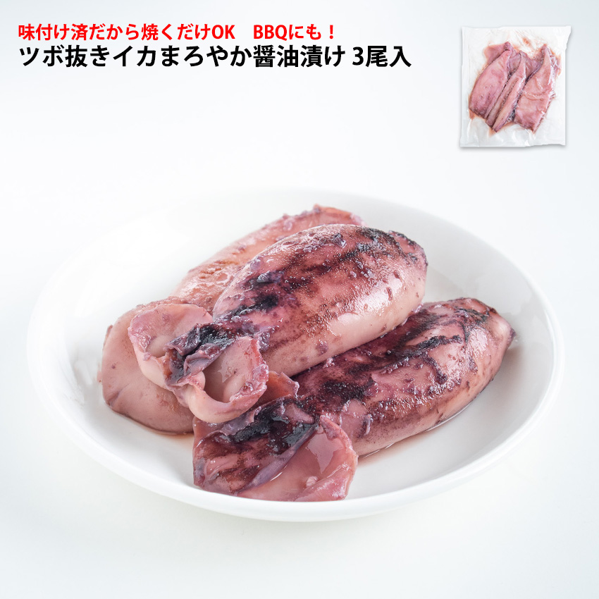 松イカ ツボ抜き まろやか醤油漬け 3尾 加熱用 冷凍 焼きイカ マツイカ 惣菜 海鮮惣菜 お祭り 仕出し イベント 納涼祭 味付済 白醤油 業務用 徳用