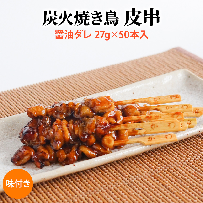 炭火 焼き鳥 皮串 醤油ダレ 27g×50本入(1.35kg)業務用 冷凍 焼鳥 やきとり たれ 鶏皮 タレ 大容量 学園祭 お祭り イベント 学祭 縁日 居酒屋