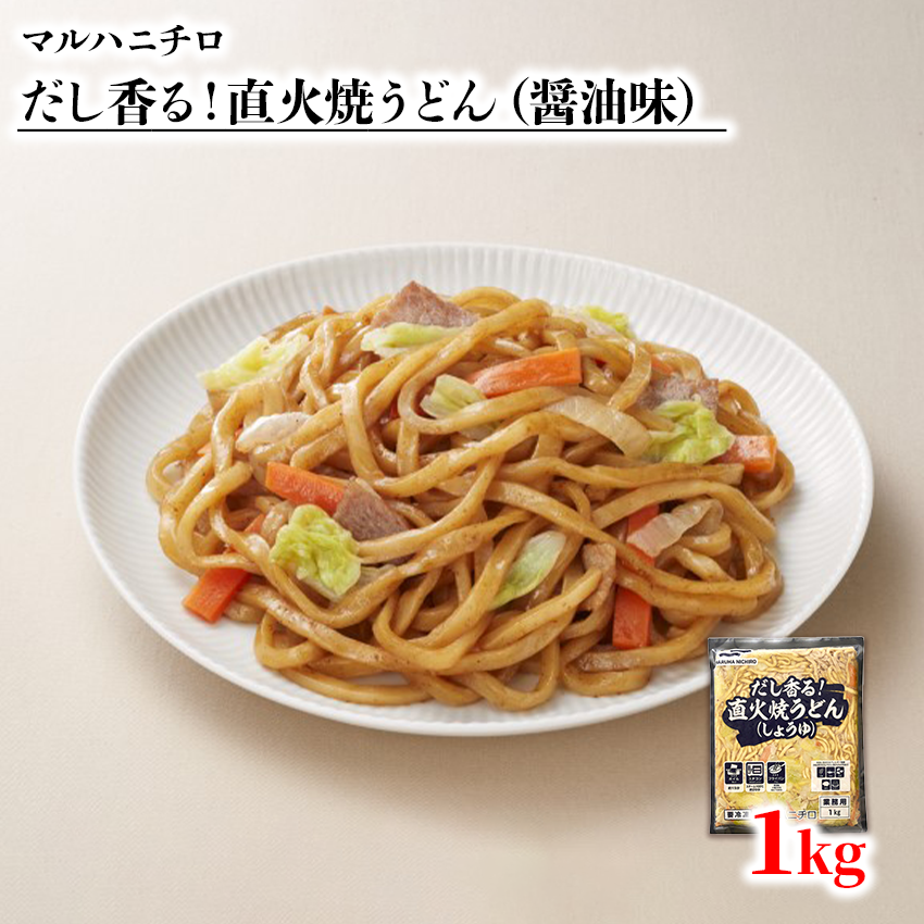マルハニチロ 出汁香る 直火焼うどん 醤油 1kg 具入り 温めるだけ 冷凍 うどん udon 焼きそば 屋台 縁日 こども会 イベント 業務用 徳用 時短