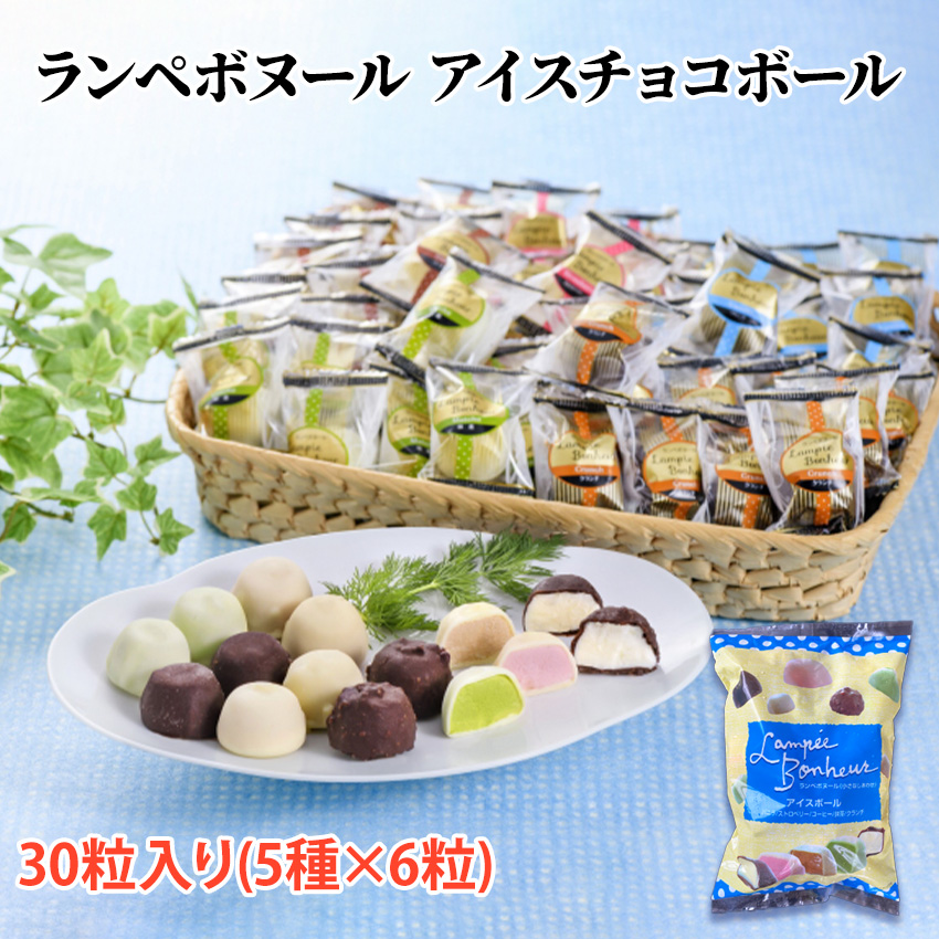 チョコアイスボール ランペボヌール 30粒入り(5種×6粒) 一つずつ小分け バニラ コーヒー 抹茶 ストロベリー クランチ 冷凍