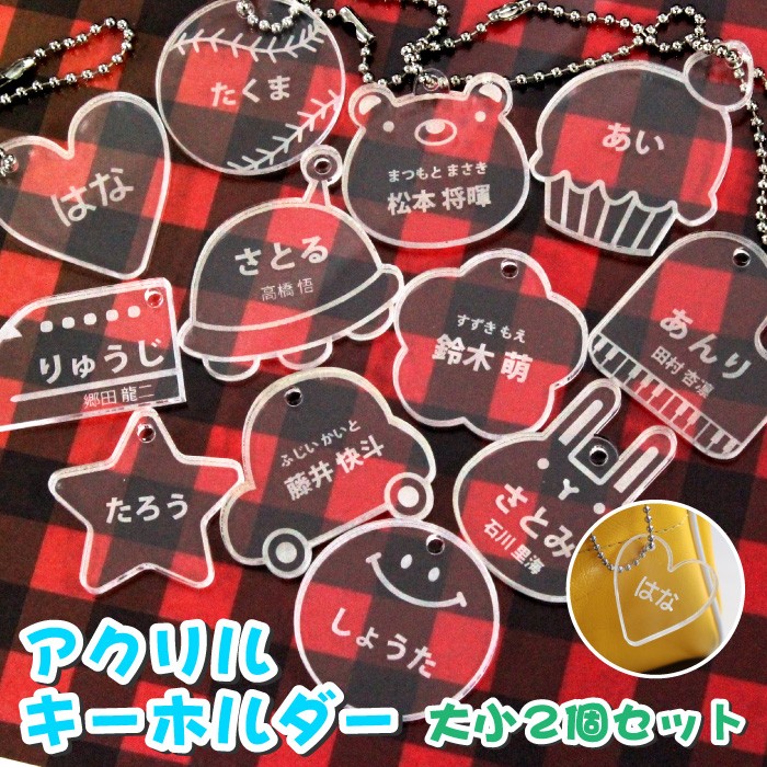名入れ アクリルキーホルダー 2個セット ネームプレート アクリル 名前 キッズ 子供 お名前キーホルダー クリア 透明 ネームキーホルダー 園児 ak001