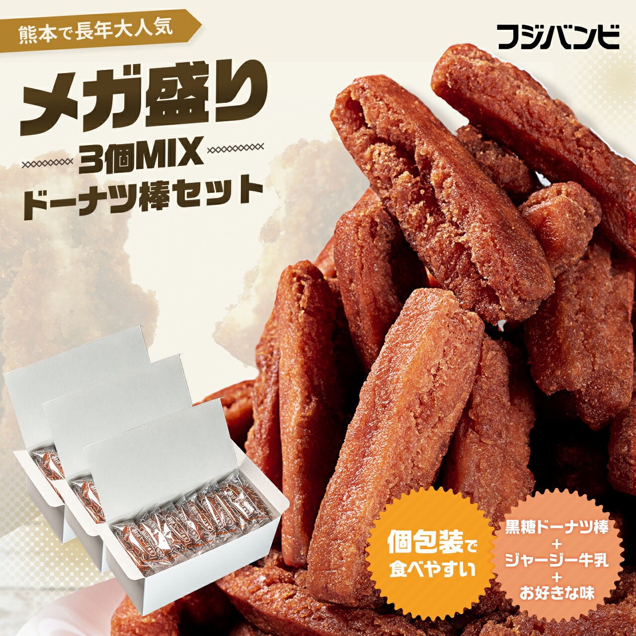 名称 ドーナツ棒3種入りメガ盛りMIX!