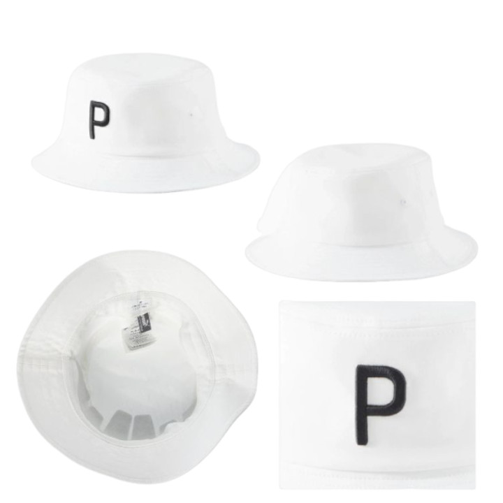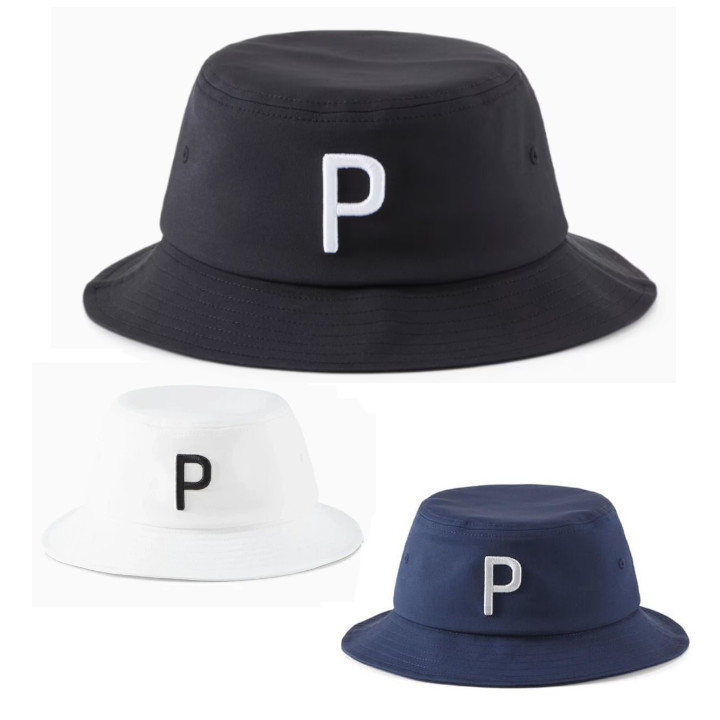 フロントの大きなPモチーフの立体刺繍がアクセントになっているバケットハット。
