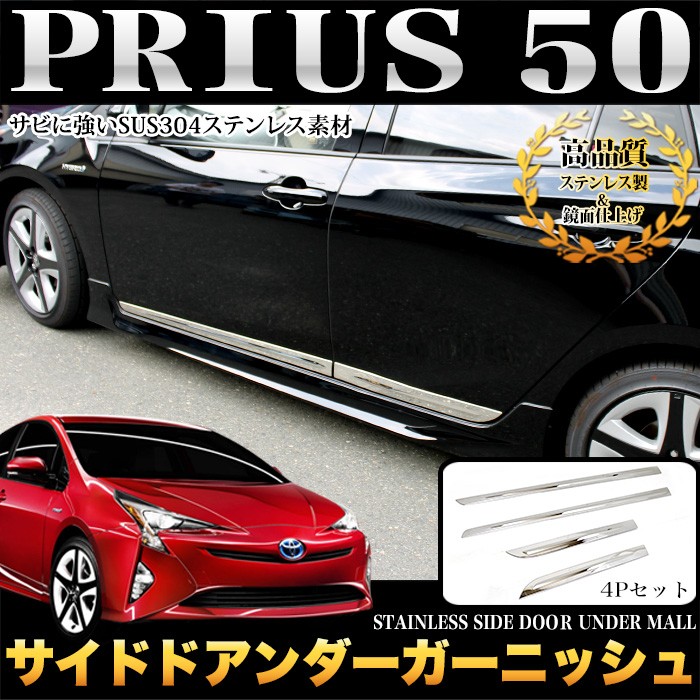 プリウス 50 系 サイドドアアンダーガーニッシュ メッキ ステンレス製 4P