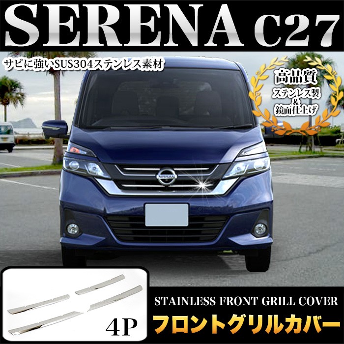 セレナ C27 系 G/X/S 専用 フロントグリルカバー メッキ 4P