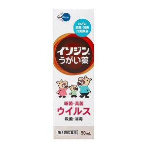"〜口中からのどにすぐれた殺菌・消毒効果があります〜 ★有効成分ポビドンヨードを含むうがい薬です口中からのどにすぐれた殺菌・消毒効果があります。有効成分ポビドンヨードが、ヨウ素を遊離し、各種の細菌、真菌、ウイルスなど広範囲の微生物に対して迅速な殺菌・消毒効果を発揮します。効能・効果 口腔内およびのどの殺菌・消毒・洗浄、口臭の除去成分・分量 1ml中 ポビドンヨード70mg(有効ヨウ素として7mg)添加物としてエタノール、l-メントール、サッカリンナトリウム、香料を含有しています。《成分・分量に関連する注意》本剤の使用により、銀を含有する歯科材料(義歯など)が変色することがあります。内容量 50mL用法・用量 1回、本剤2-4mlを水約60mlにうすめて、1日数回うがいしてください《用法用量に関連する注意》定められた用法・用量を厳守してください。小児に使用させる場合には,保護者の指導監督のもとに使用させてください。本剤はうがい用のみに使用し,キズややけどへの使用や,内服はしないでください。目に入らないようにご注意ください。万一,目に入った場合には,すぐに水またはぬるま湯で洗ってください。なお,症状が重い場合には,眼科医の診療を受けてください。本剤は使用するときにうすめて,早めに使用してください。使用上の注意 《してはいけないこと》(守らないと現在の症状が悪化したり、副作用が起こりやすくなります)次の人は使用しないでください。本剤または本剤の成分によりアレルギー症状を起こしたことがある人。《相談すること》次の人は使用前に医師、薬剤師または登録販売者にご相談ください。薬などによりアレルギー症状を起こしたことがある人。次の症状のある人。口内のひどいただれ次の診断を受けた人。甲状腺機能障害使用後、次の症状があらわれた場合は副作用の可能性があるので、直ちに使用を中止し、この文書を持って医師、薬剤師または登録販売者に相談してください。関係部位 症状皮膚 発疹・発赤、かゆみ口 あれ、しみる、灼熱感、刺激感消化器 吐き気その他 不快感まれに下記の重篤な症状が起こることがあります。その場合は直ちに医師の診療を受けてください。症状の名称 症状ショック(アナフィラキシー) 使用後すぐに、皮膚のかゆみ、じんましん、声のかすれ、くしゃみ、のどのかゆみ、息苦しさ、動悸、意識の混濁等があらわれる。5-6日間使用しても症状がよくならない場合は使用を中止し、この文書を持って医師、薬剤師または登録販売者にご相談ください。保管及び取扱い上の注意 《保管及び取扱い上の注意》直射日光の当たらない涼しい所に密栓して保管してください。小児の手の届かない所に保管してください。他の容器に入れ替えないでください。(誤用の原因になったり品質が変化します。)衣服等に付着すると着色しますのでご注意ください。なお、付着した場合にはすぐに水でよく洗い落としてください。使用期限をすぎた製品は、使用しないでください。製造販売元 塩野義製薬株式会社〒541-0045 大阪市中央区道修町3丁目1番8号06-6209-6948製造国 日本使用期限 使用期限が180日以上あるものをお送りします広告文責 株式会社藤井寺ケンコー薬局(072-938-6850)"