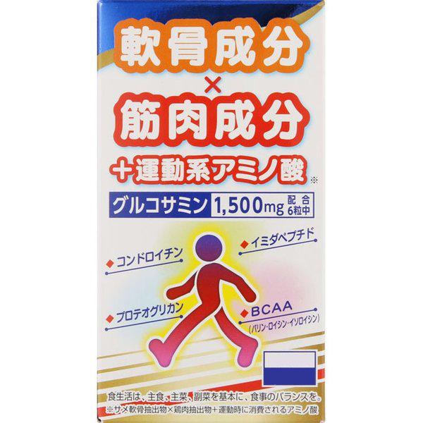 "□ 軟骨成分(コンドロイチン硫酸=サメ軟骨抽出物/プロテオグリカン=サケ抽出物)と筋肉成分(イミダペプチド=鶏肉抽出物)にグルコサミンと運動系アミノ酸BCAA(バリン、ロイシン、イソロイシン)を配合した栄養補助食品です。