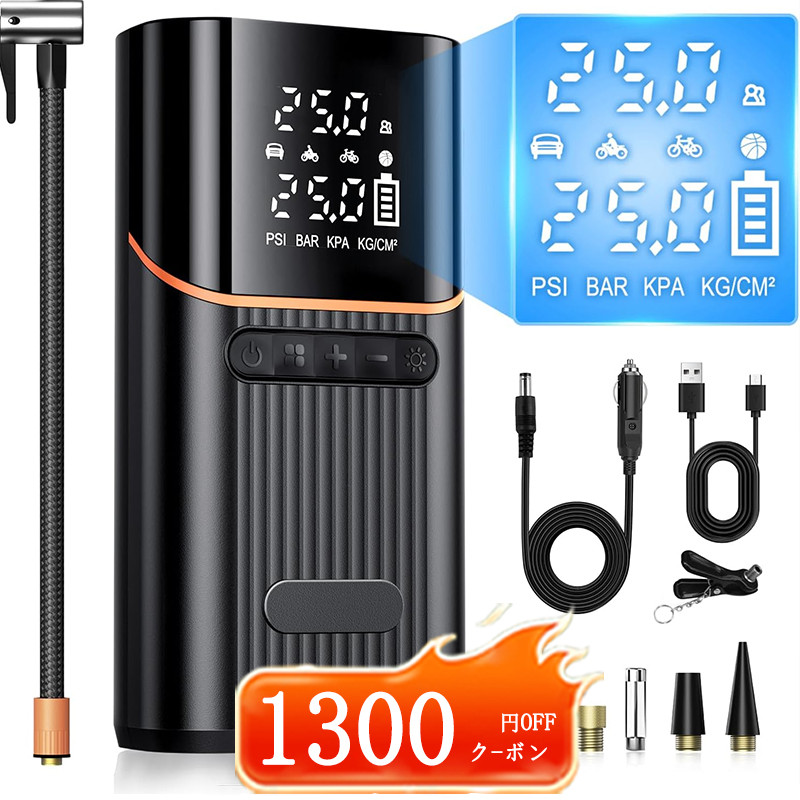 「クーポンで3,280円」電動空気入れ 電動コンプレッサー エアコンプレッサー 空気入れ 自転車 タイヤ 自動車 充電式 バイク サイクル 仏式 英式 米式 車