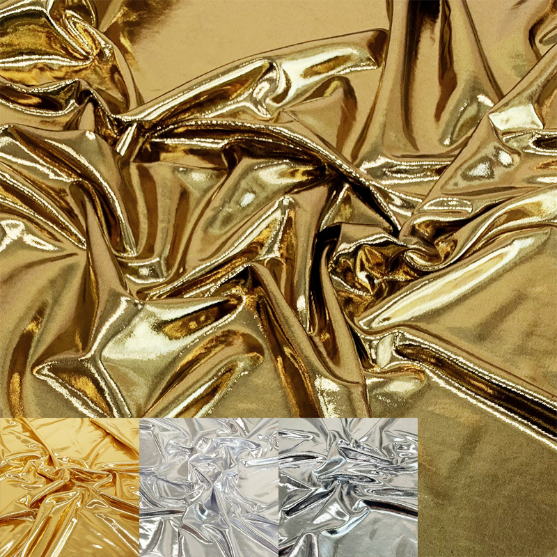 薄手のストレッチ地にラメ箔を施した生地です。