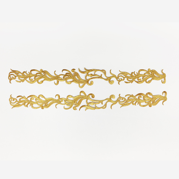 | 詳細 | アイロンで接着出来るラメ刺繍モチーフです。 お好きな場所で切って組み合わせることが出来ますが裁ち端はほつれやすいので、お早めに縫い付けるかピケなどでほつれ止めをしてください。 |