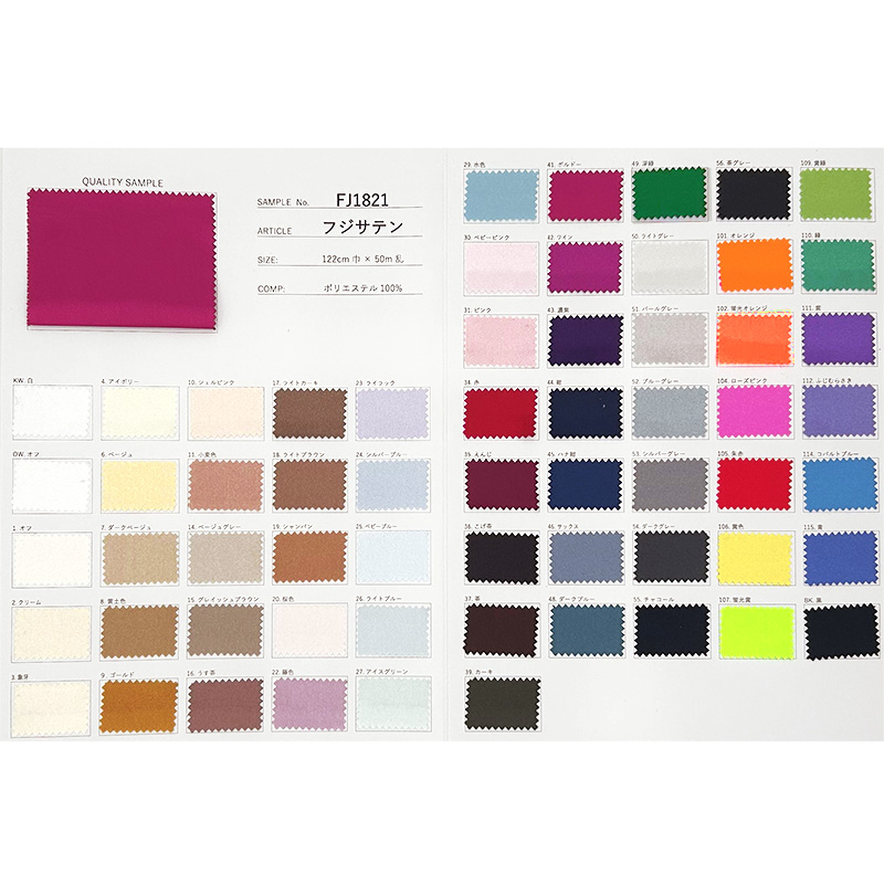 | 詳細 | フジサテンのスワッチ付き見本帳です。 ★見本帳はメール便(ネコポス)対応商品です。 □実際の商品はコチラ(クリック!) |