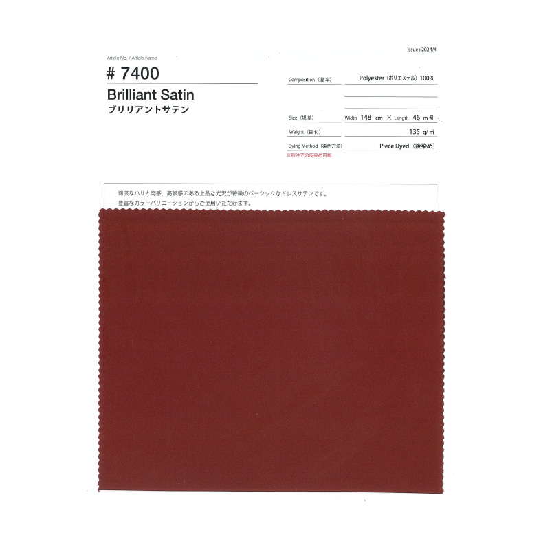 | 詳細 | 7400ブリリアントサテンのスワッチ付き見本帳です。 ★見本帳はメール便(ネコポス)対応商品です。 □実際の商品はコチラ(クリック!) |