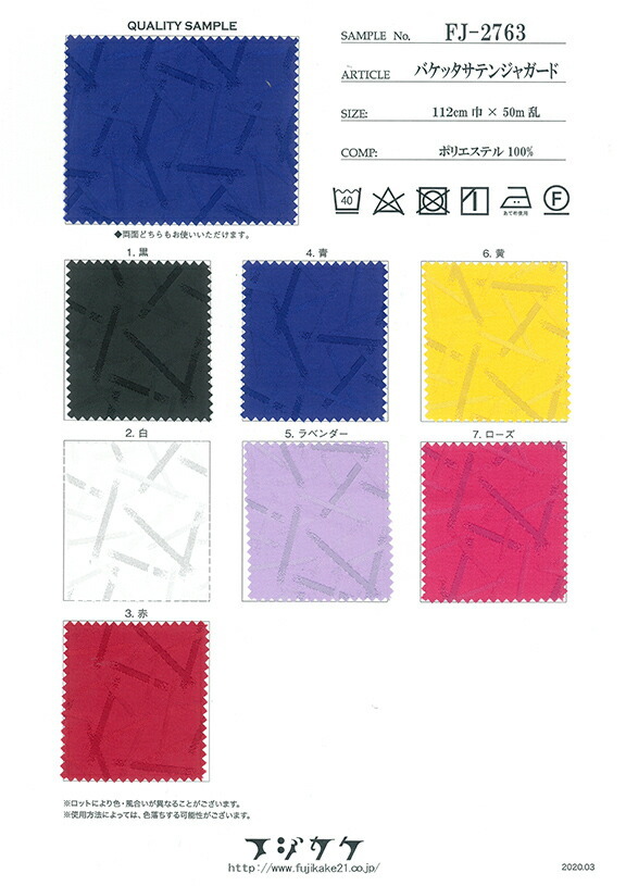 | 詳細 | バケッタサテンジャガードのスワッチ付き見本帳です。 ★見本帳はメール便(ネコポス)対応商品です。 □実際の商品はコチラ(クリック!) |