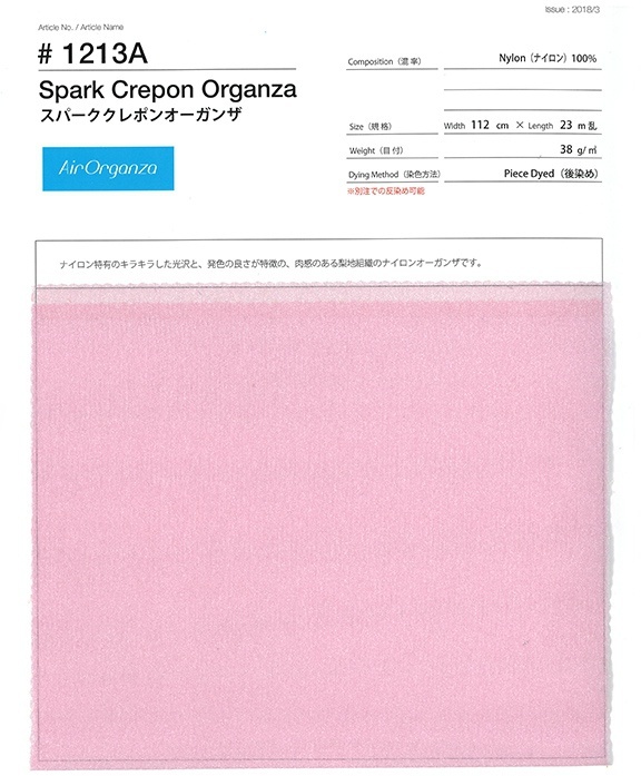 | 詳細 | 1213ナイロンスパーククレポンのスワッチ付き見本帳です。 ★見本帳はメール便(ネコポス)対応商品です。 □実際の商品はコチラ(クリック!) |