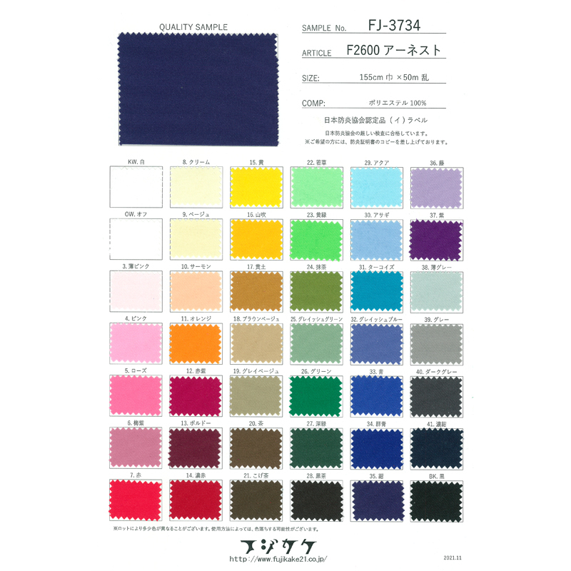 | 詳細 | F2600アーネストのスワッチ付き見本帳です。 ★見本帳はメール便(ネコポス)対応商品です。 □実際の商品はコチラ(クリック!) |