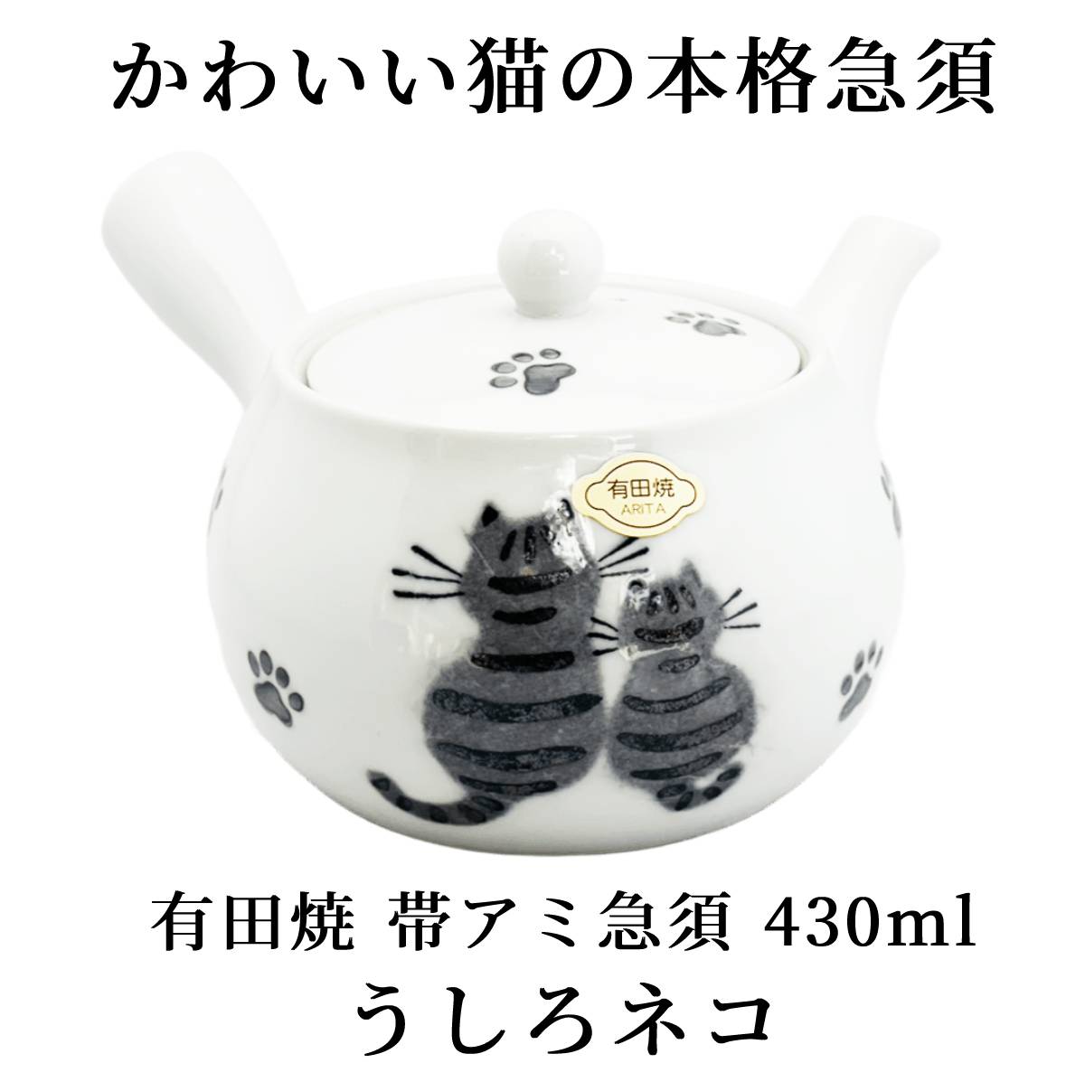 急須 有田焼 うしろネコ 430ml えらべる茶漉し 帯アミ カゴアミ 大きめサイズ 白磁 茶器 国産