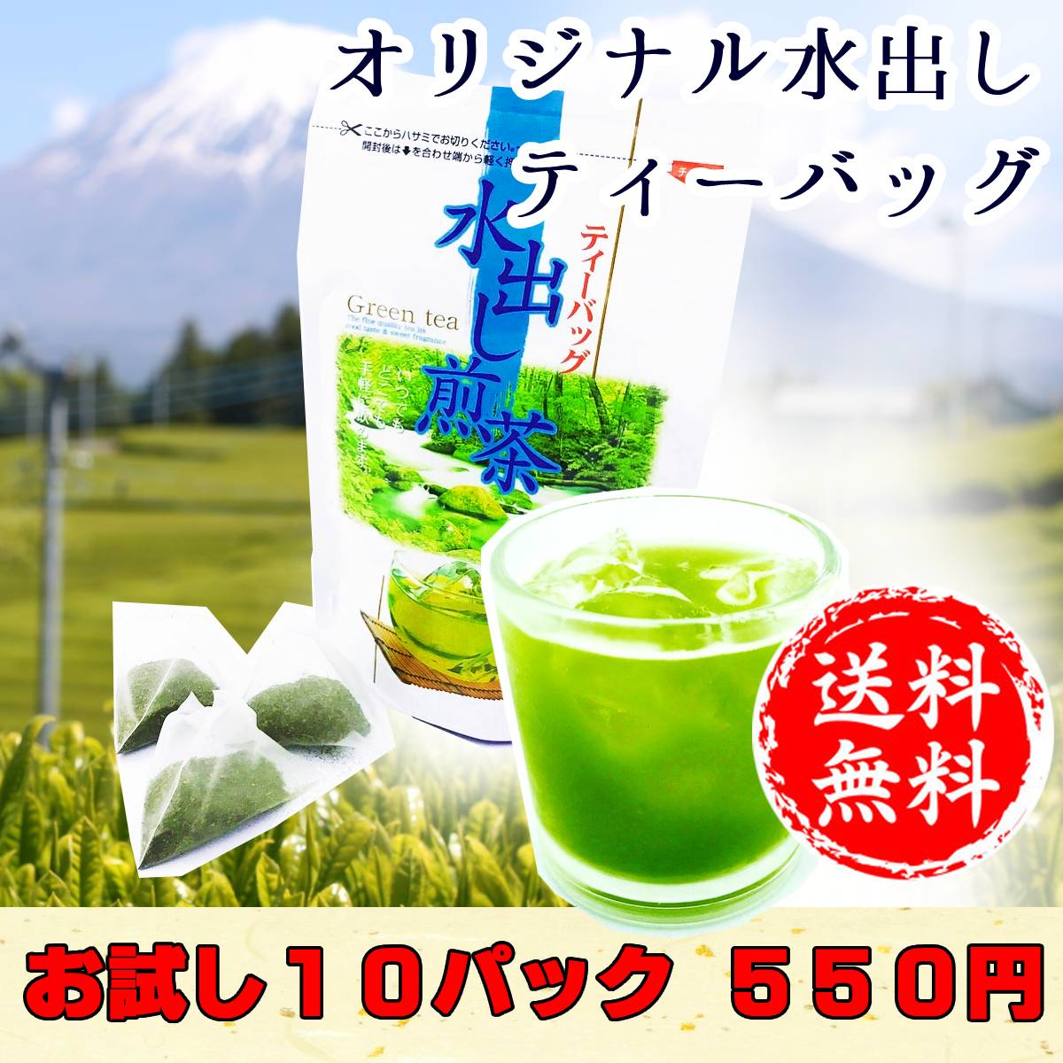 ポイント消化550円 ティーバッグ ゴクゴク飲みたい水出し煎茶 オリジナル冷茶ティーバッグ 5g×10個 水出し深蒸し茶 静岡茶