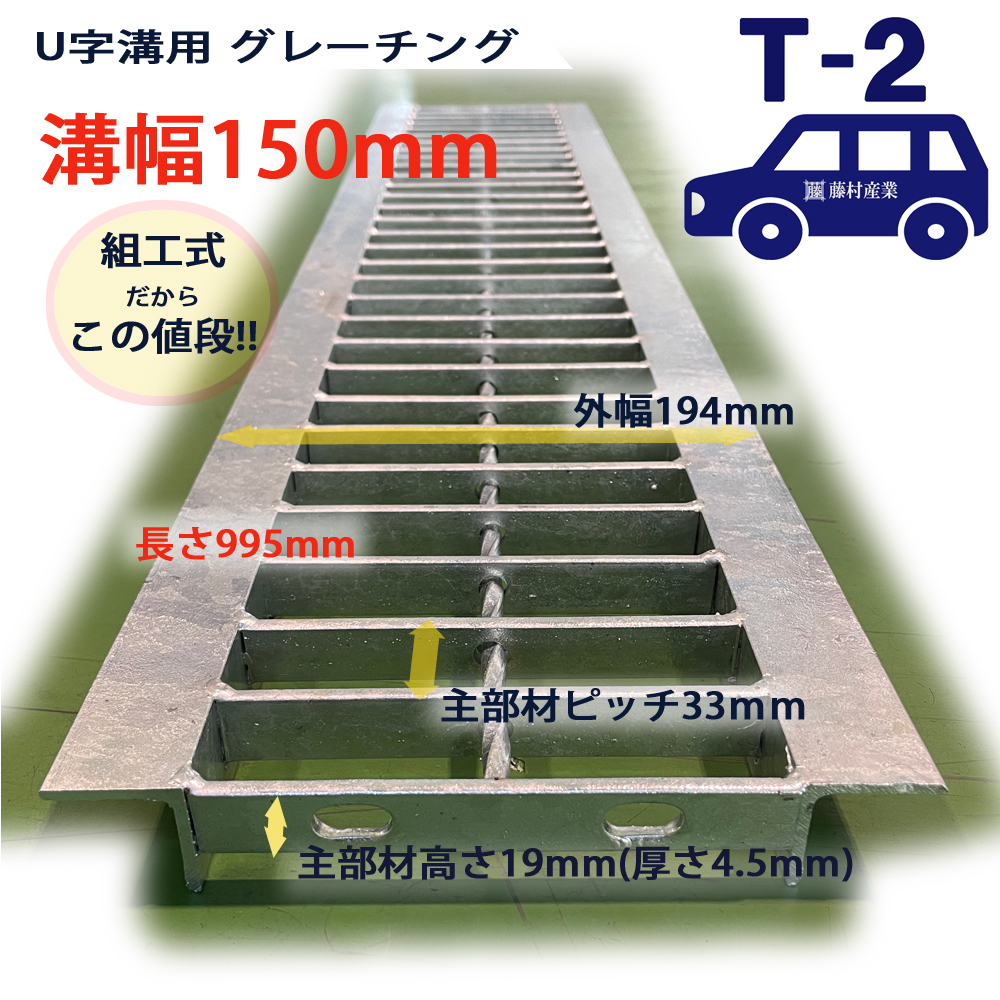 U字溝用 グレーチング 溝蓋 普通目 プレーンタイプ 日本製 組工式 組構式 溝幅 150mm T-2(乗用車程度)型番KUN1945F15