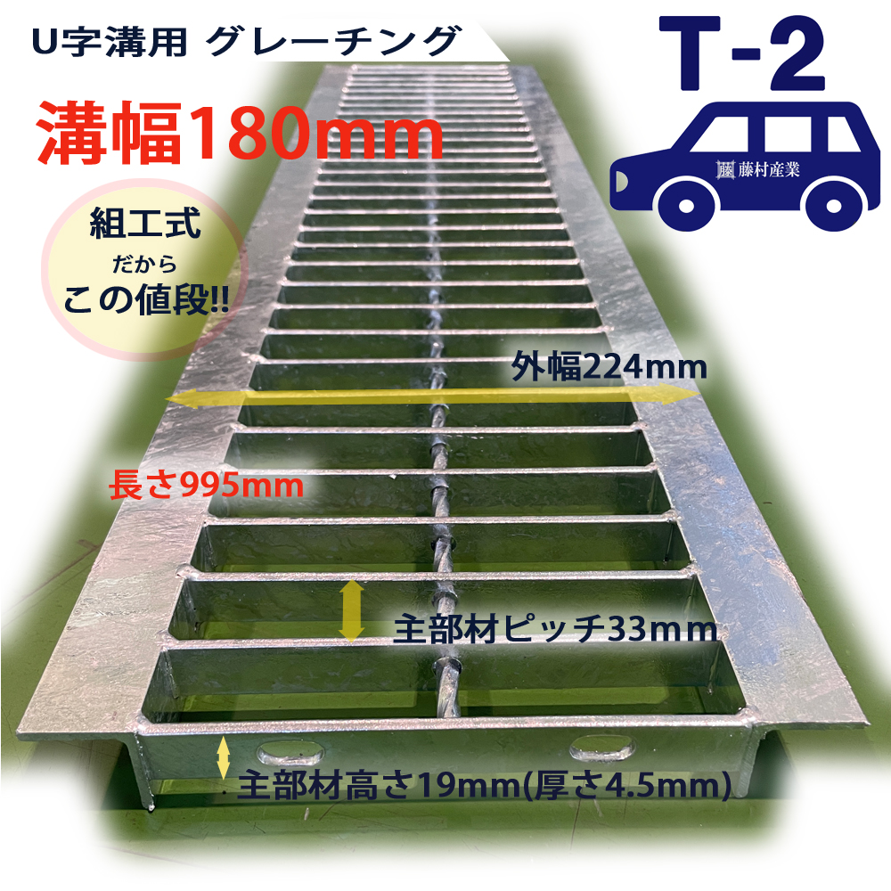 U字溝用 グレーチング 溝蓋 普通目 プレーンタイプ 日本製 組工式 組構式 溝幅 180mm T-2(乗用車程度)型番KUN1945F18