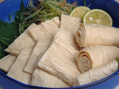 | 【京都ブランド認定商品】 豆乳を温めて上に張った膜を救い上げたものが生湯葉どす。 冷蔵設備の乏しかった昔は乾燥ゆばが主流どしたが、現代はこのようなフレッシュな生湯葉が手軽に食べて頂けるようになりました。 この生ゆばは国産大豆にこだわり、一枚一枚手作りにて引き上げた高品質な生湯葉どす。 生のゆばの中で生湯葉はしっかりした歯ごたえが楽しめます。 そのまま適当な大きさに切ってもうて、わさび醤油で刺身にしてもらうんが、もっともゆばの自然の甘みを味わって頂ける食べ方どす。 生春巻きの皮として使うてもろても、滋味あふれる生春巻きが出来上がりますし、お吸い物、おうどん、おでんなんかに入れてもうても美味しゅう召し上がって頂けます。 |
