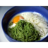 | かまぼこ素材をソーメン状にしたあります。 涼味あふれるカマボコそうめんです 西陣林孝太郎造酢さん謹製のめんつゆが付いてますさかいそれかけて召し上がっておくれやす。 温泉卵なんかと合わせてもよろしおすし、お吸い物の具にして頂いても綺麗で美味しおすわなあ。 白と緑(抹茶)の2色セットで暑くて食欲が落ちる時期に涼味を誘う逸品ですわ。 |