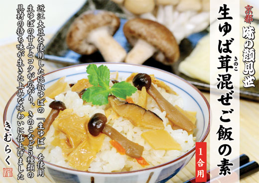 | 滋賀県特産の近江大豆を使用した比叡ゆばの「生ゆば」を使用。 繊細な「生ゆば」は、職人が手作業で丁寧にほぐし他の具材と一緒に炊き上げています。 生ゆばの大豆の甘みとコクが広がり、きのこなど5種類の具材の持ち味が生きた上品な味わいに仕上げています。 作り方はとっても簡単 1合の炊きたてご飯に混ぜるだけ! 便利な1合用で、お茶碗約2杯分。一人暮らしや小人数のご家庭にピッタリです。 |