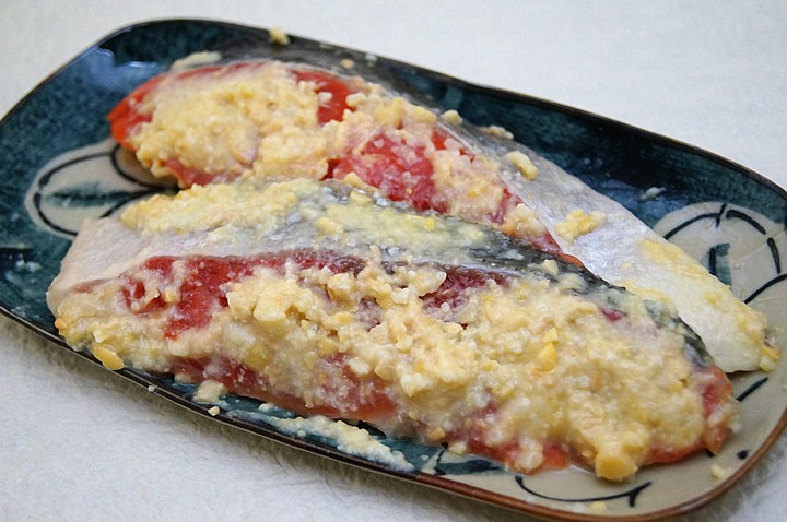 | 鮭の中でも比較的日本人好みというか、元々日本だったところで獲れてるのでほぼ国産と言うても良いかと私は思いますロシア産の紅鮭を西京漬にいたしました 西京漬はご飯にも良くあいますし、酒の肴にして頂いても宜しいかと存じます 保存料などは使わずに仕上げましたので安心してお召し上がり下さいませ 【焦がさず綺麗に焼くコツ】 (1)味噌はペーパータオルで拭き取るか流水にて流して下さい (2)オーブントースターなどでアルミホイルを敷いて焼くと中に火が早く通りますので、外側が焦げる前に焼き上がります (3)料理屋さんなどは遠火の弱火でじっくり焼きつつ、途中で2、3度ミリンを塗って焼き上がりのテリを出してはります ※【ご注意ください】 商品画像は2切になっておりますが、ご注文単位は1切れ単位です |